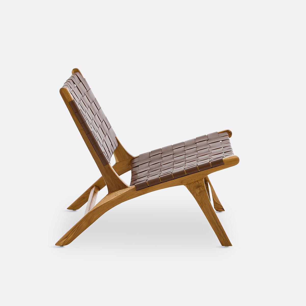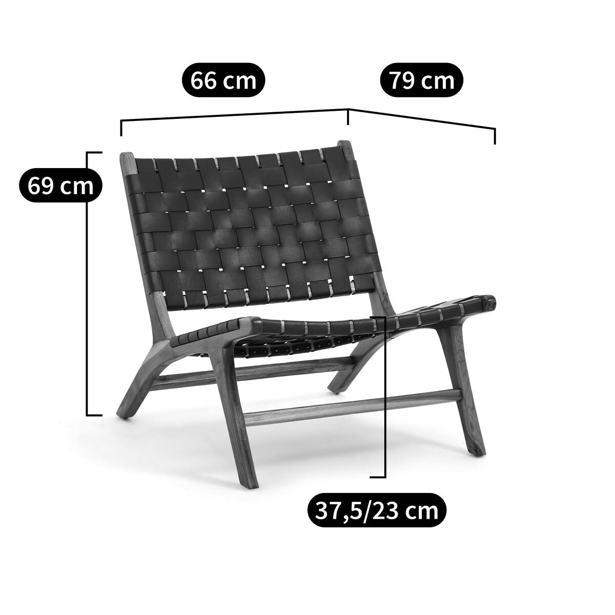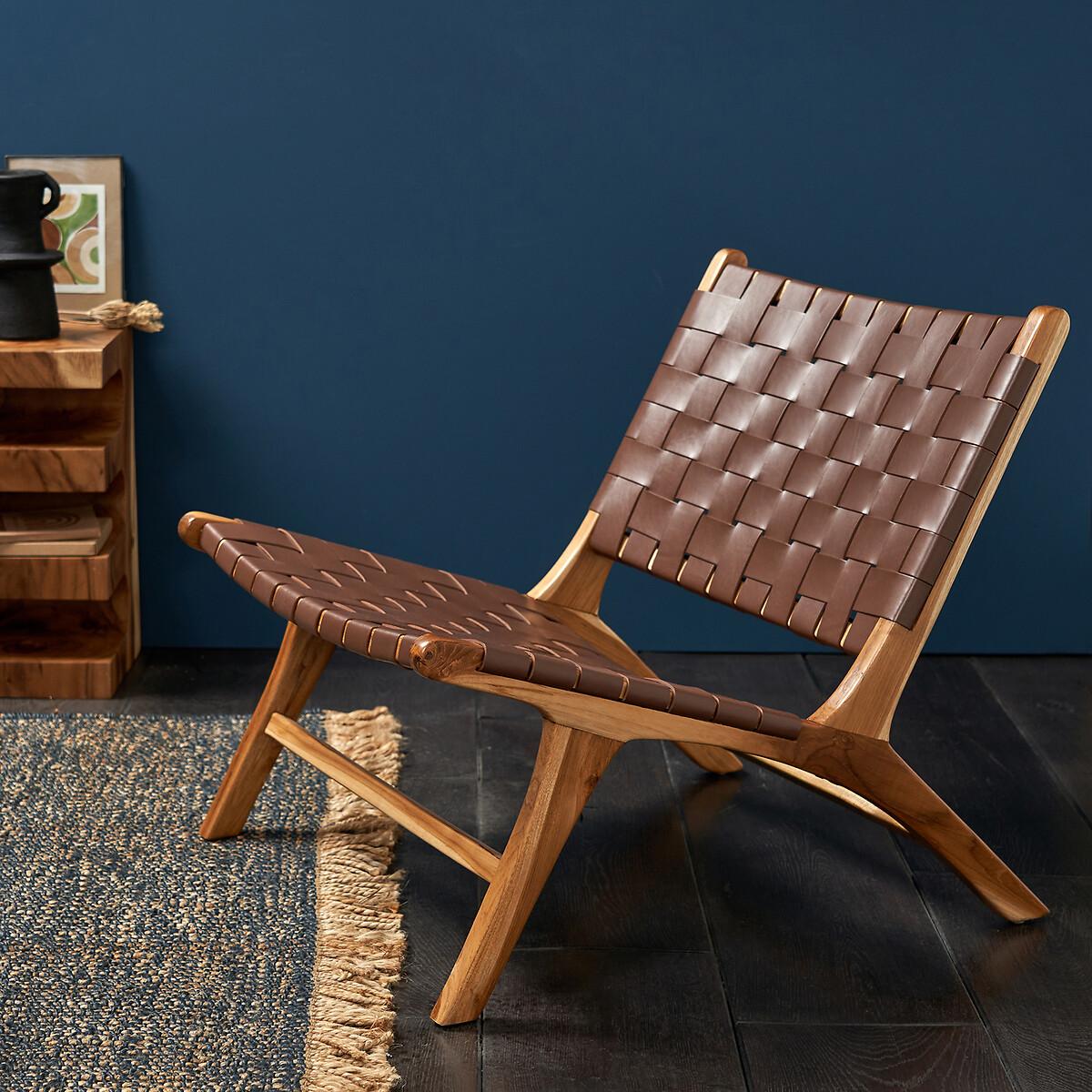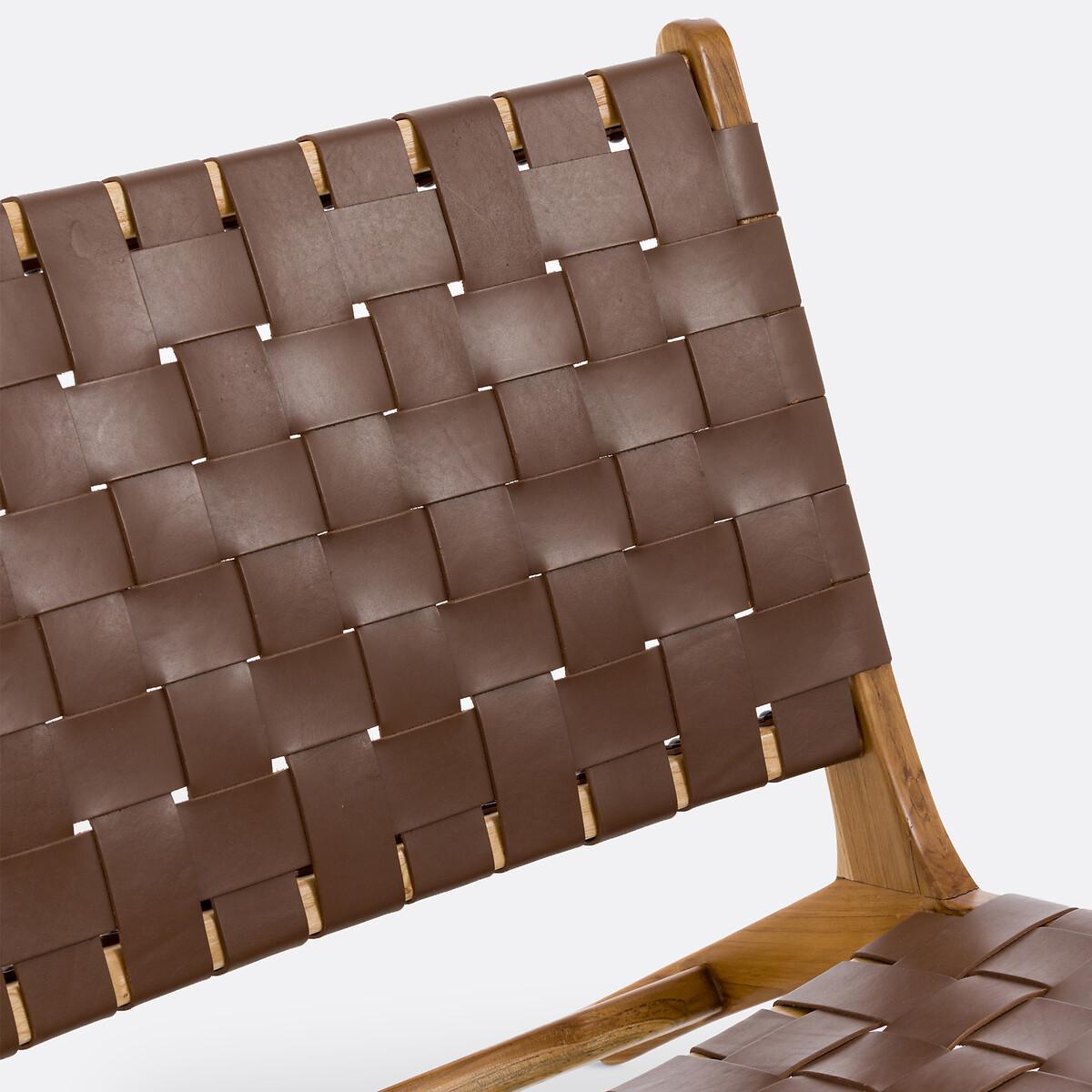 A wide, low seat with an inclined back. How does one resist the call of the Amanda lounge chair, in solid teak and woven leather? To chill, read a book or sip a drink with friends. it's perfect!