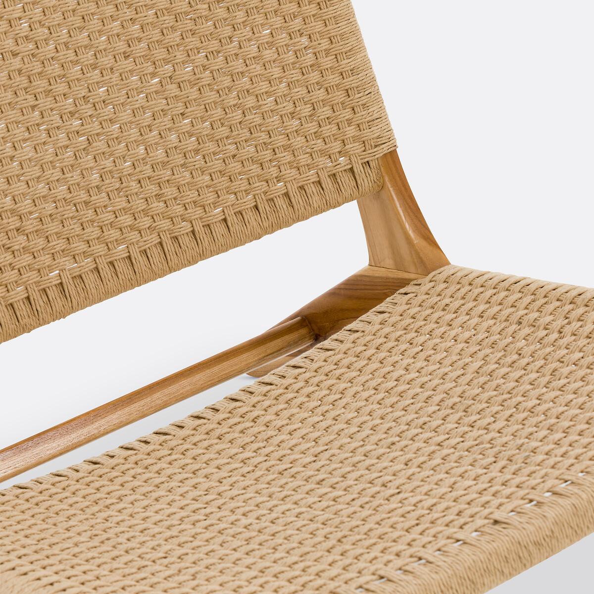 A wide, low seat with an inclined back. How will you resist the call of the Amanda lounge chair? In solid teak and hand-woven paper rope, it's a charming piece of furniture? To chill, read a book or sip a drink with friends. it's perfect!Product Details • Solid teak structure, nitrocellulose varnish finish • Seat and back in hand-woven paper rope • Plastic feet pads. Dimensions • Width: 66cm • Height: 69cm • Depth: 76cm • Seat: L66 x H37.5/27 x D49cm • Back: H40cmDelivery:. Sold pre-assembled. Available for home delivery. Parcel dimensions and weight1 parcel • L82 x H76 x D68.5cm. 12kg