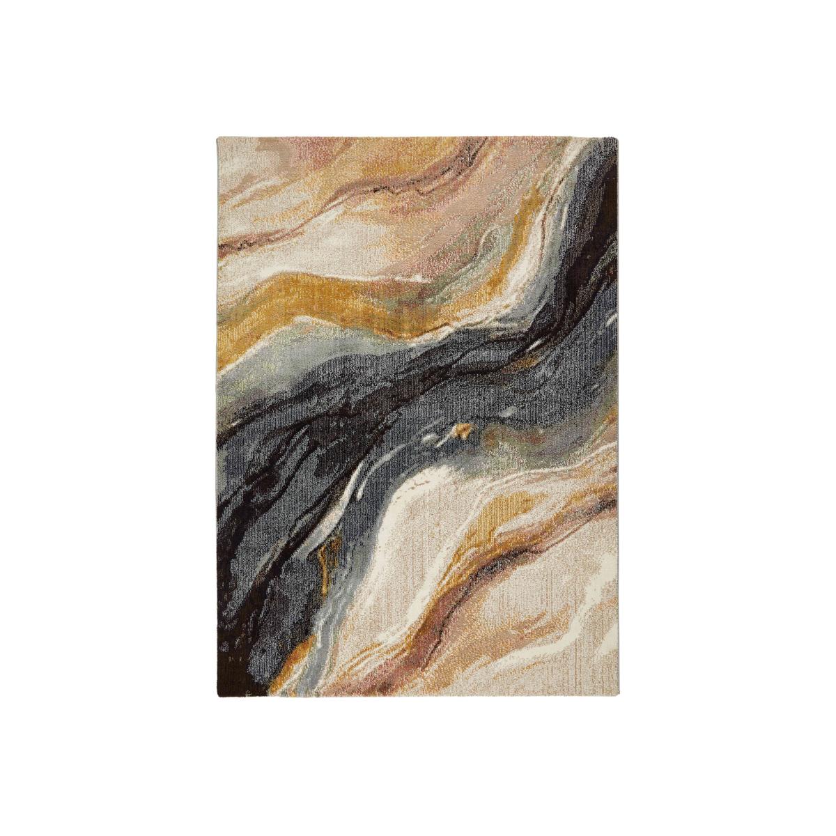 Inspired by natural rock formations, this striking abstract rug brings warmth and style to any space thanks to its velvety-feel texture and contemporary colour palette. Why you'll love it Stunning contemporary rug displays a singular modern aesthetic. Abstract arrangement of layers and swirls inspired by rock formations. Stunning colour palette of charcoal, orange, ivory and sage green. Low velvet-soft pile feels fabulous underfoot. Machine woven for durability. Available in a choice of sizes. Makes a striking statement in any room. This rug is part of the Furniture Village home accessories collection. What you need to know Shallow pile. 100% polypropylene. For indoor use only. Vacuum regularly using a suction vacuum cleaner. Blot stains; do not rub.