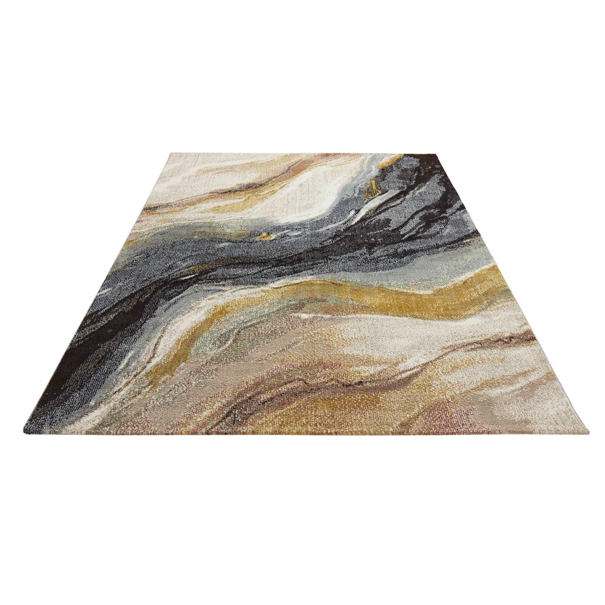 Inspired by natural rock formations, this striking abstract rug brings warmth and style to any space thanks to its velvety-feel texture and contemporary colour palette. Why you'll love it Stunning contemporary rug displays a singular modern aesthetic. Abstract arrangement of layers and swirls inspired by rock formations. Stunning colour palette of charcoal, orange, ivory and sage green. Low velvet-soft pile feels fabulous underfoot. Machine woven for durability. Available in a choice of sizes. Makes a striking statement in any room. This rug is part of the Furniture Village home accessories collection. What you need to know Shallow pile. 100% polypropylene. For indoor use only. Vacuum regularly using a suction vacuum cleaner. Blot stains; do not rub.