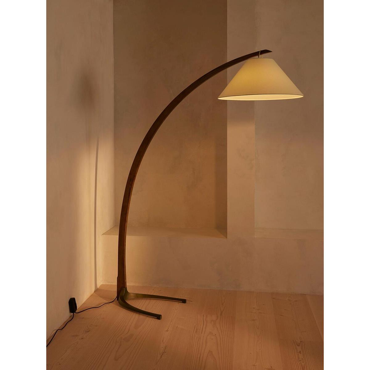 Referencing the lighting styles seen in Soho House Hong Kong, the Spencer floor lamp features a sleek arc shape for a stand-alone statement. A solid oak frame sits on antique brass feet, while a simple fabric shade enhances the lamp's sculptural lines. All of our portable lamps are fitted with dimmer switches, allowing you to adjust the light level to your mood. Arc floor lamp Solid oak arm Linen shade is adjustable on different heights Cast metal base with antique brass finish Inspired by Soho House Hong Kong