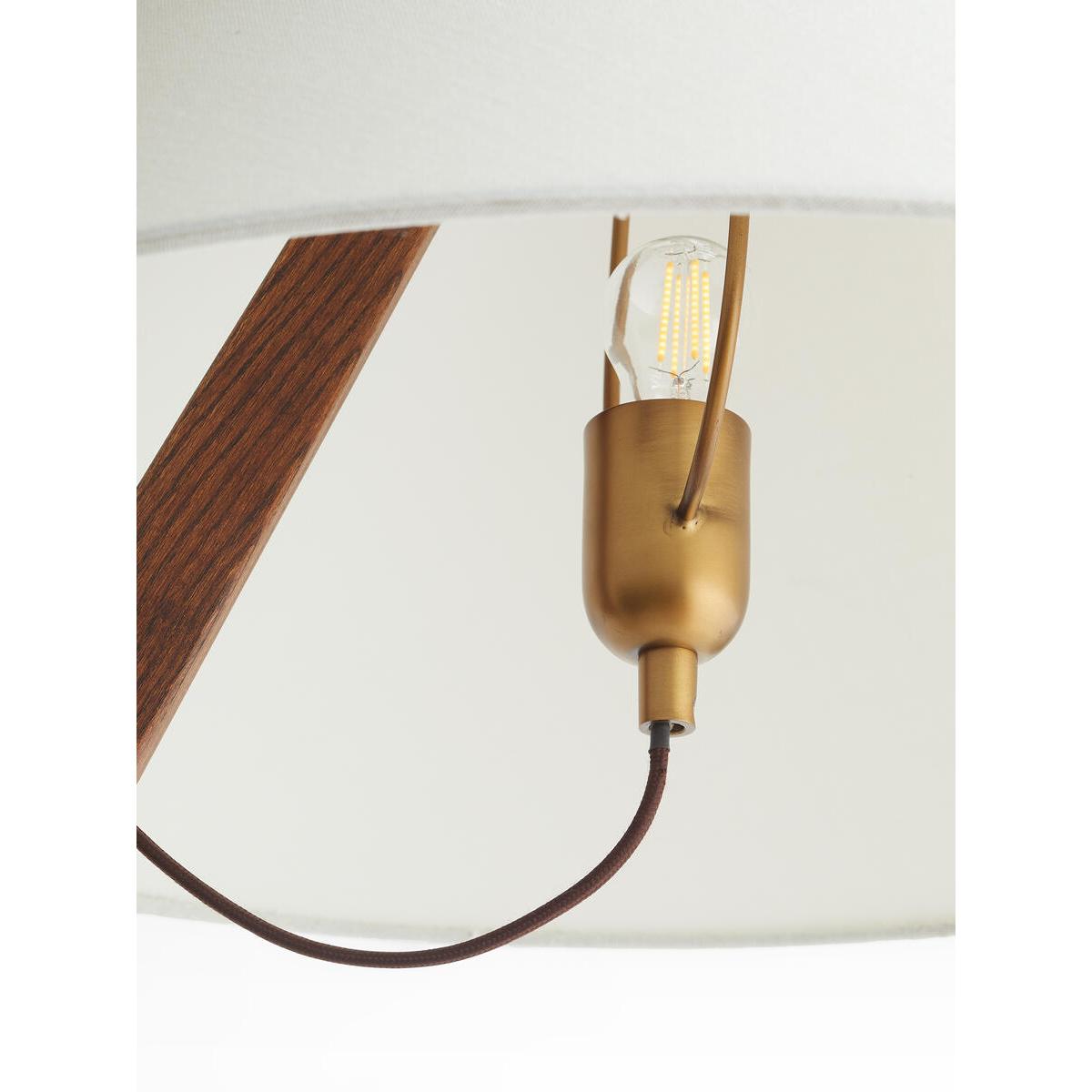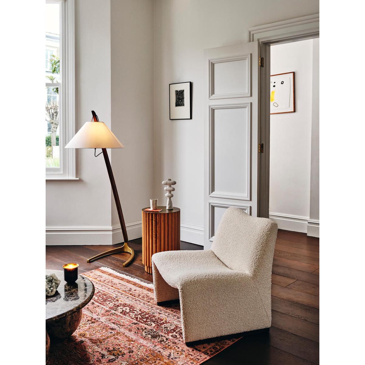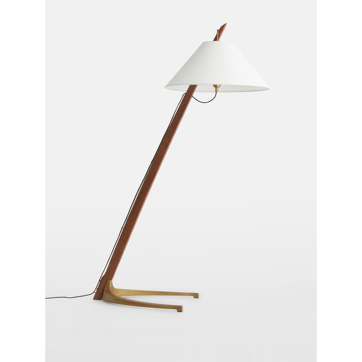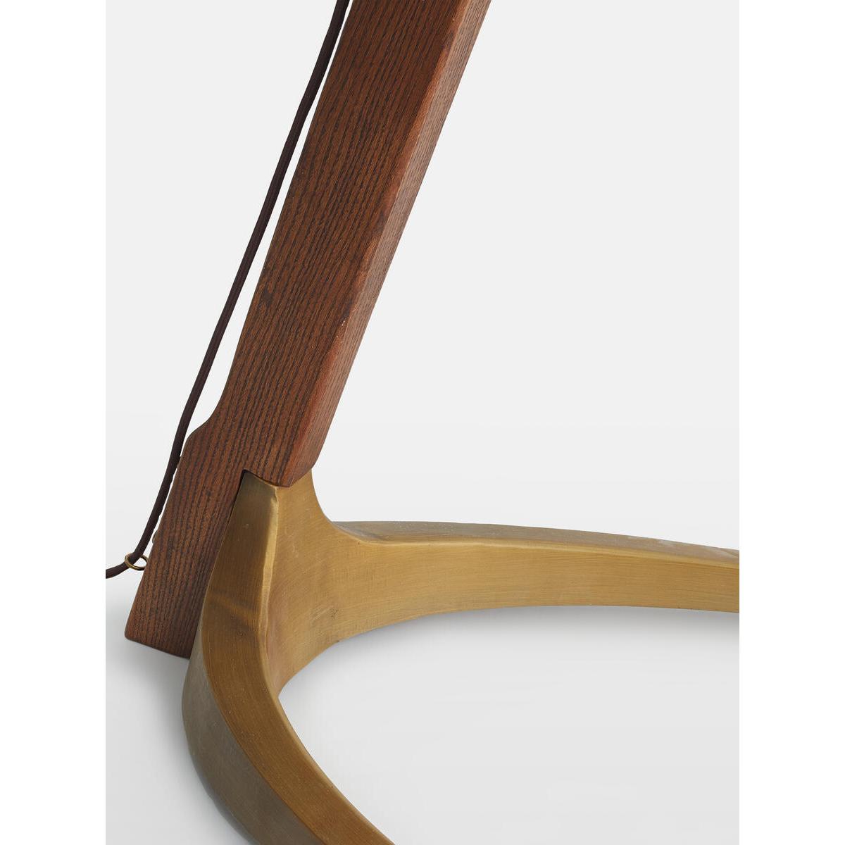 Referencing the lighting in Soho House Hong Kong, the Amarafloor lamp has a sleek, angular form which brings instant statementappeal. A solid oak frame sits on antique brass feet, while asimple fabric shade enhances the lamp's sculptural lines. Solid oak floor lamp. Fabric shade is adjustable on different heights. Cast metal base with antique brass finish. 1 / E27 / TYPE A / 60W MAXIMUM. Inspired by Soho House Hong Kong.