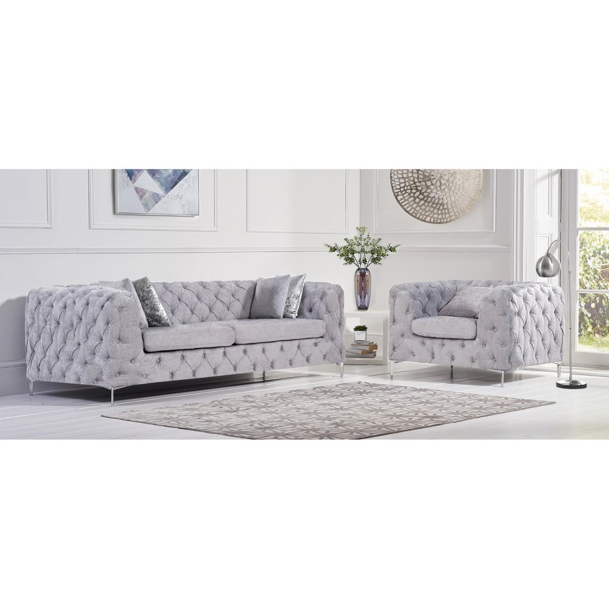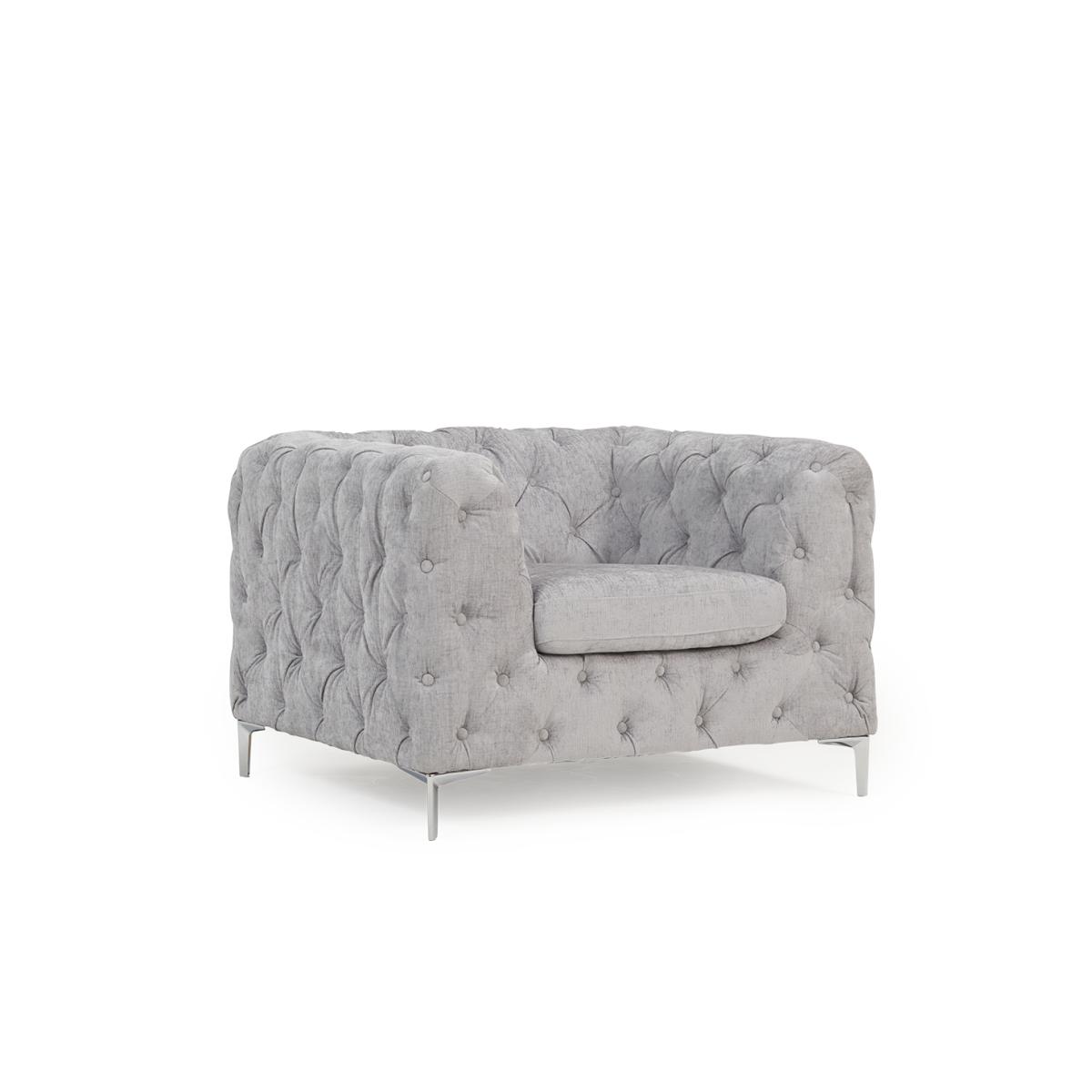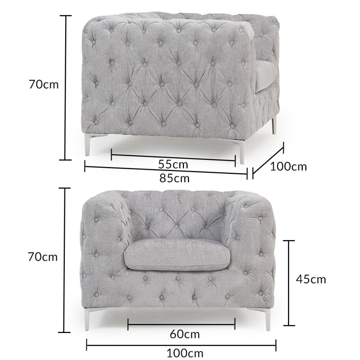 Chic and opulent, the Amara Grey Plush Armchair makes a stylish statement in any home. Upholstered in sumptuous grey plush fabric, the armchair features a stunning deep-buttoned design for a luxurious look that makes a lasting impression. Supported by resilient metal legs, the armchair features high armrests and a contrasting foam filled seat cushion for a comfortable sit. The Amara Plush Armchair is also available in blue or green and comes complete with 1 free scatter cushion. Additional Measurements:Seat Depth:60cm. Seat Width:60cm Seat Height:10cm Armrest Width:20cm Backrest Height:30cm Floor to Seat Height:45cm Leg Thickness:2cm