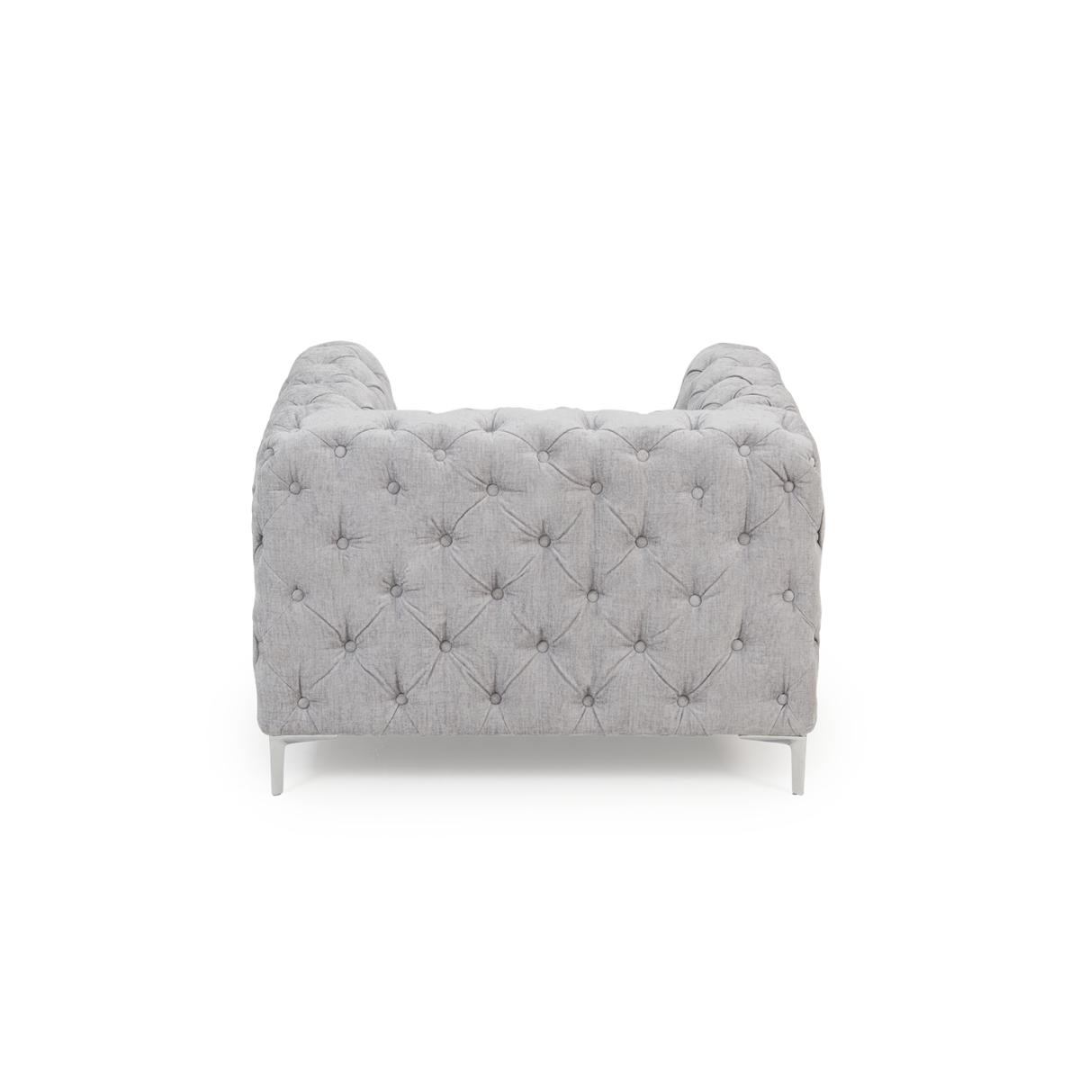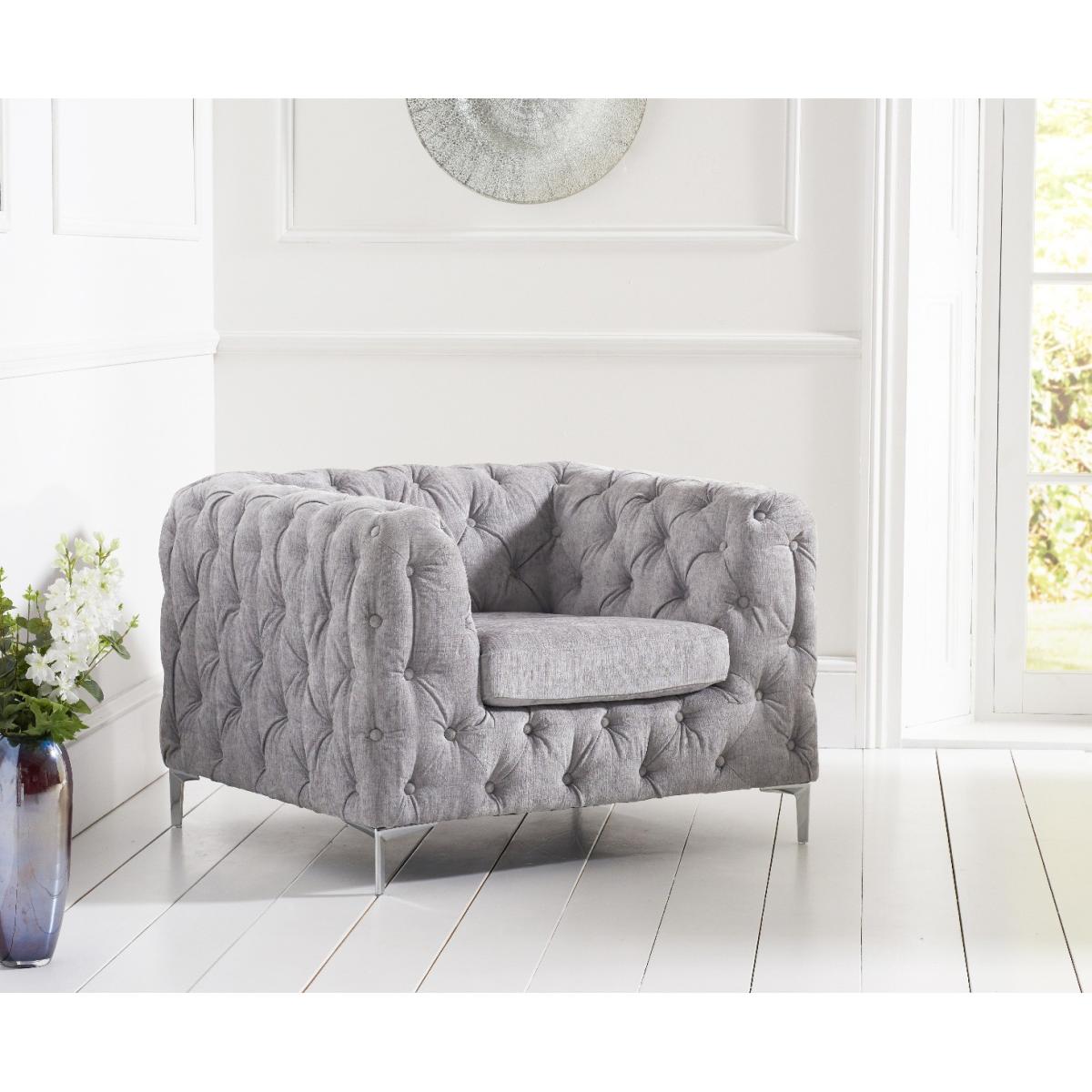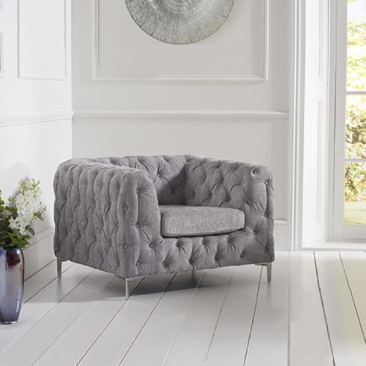 Chic and opulent, the Amara Grey Plush Armchair makes a stylish statement in any home. Upholstered in sumptuous grey plush fabric, the armchair features a stunning deep-buttoned design for a luxurious look that makes a lasting impression. Supported by resilient metal legs, the armchair features high armrests and a contrasting foam filled seat cushion for a comfortable sit. The Amara Plush Armchair is also available in blue or green and comes complete with 1 free scatter cushion. Additional Measurements:Seat Depth:60cm. Seat Width:60cm Seat Height:10cm Armrest Width:20cm Backrest Height:30cm Floor to Seat Height:45cm Leg Thickness:2cm