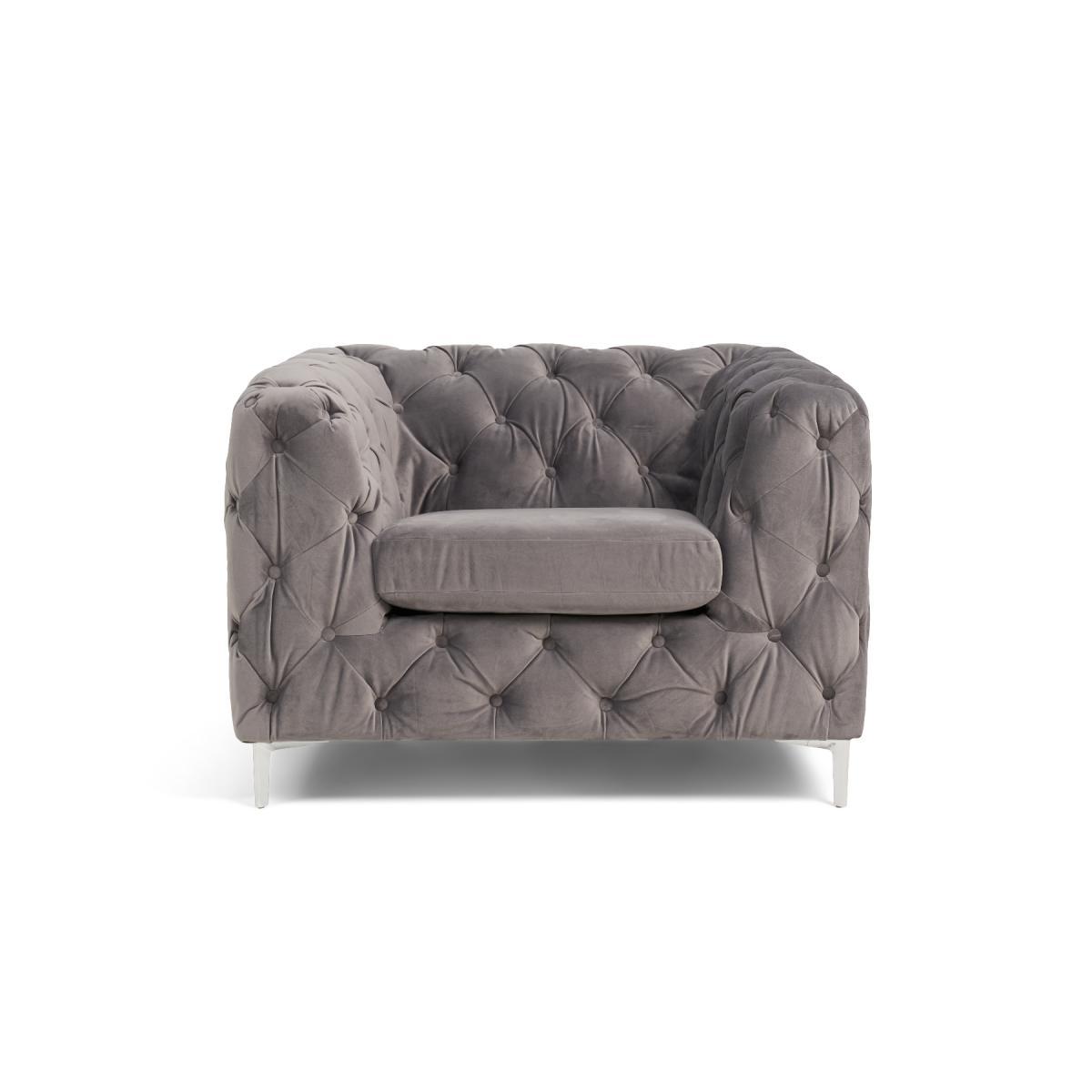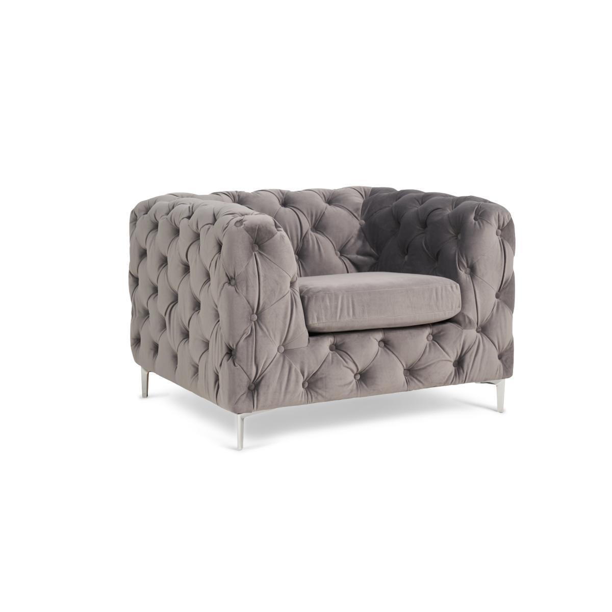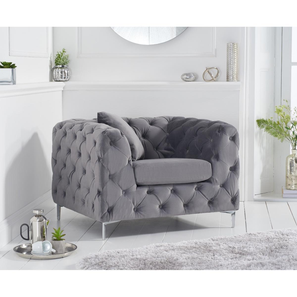 The Amara Grey Velvet Armchair makes a stylish statement. With soft velvet and a stunning deep buttoned design, the grey armchair features a comfortable deep-filled seat cushion and sleek metal legs. Stylish and comfortable armchair. Luxe, soft-touch grey velvet Elegant deep buttoned design. Foam filled seat cushion for a comfortable sit. Sleek metal legs complete the look*This armchair comes with 1 free scatter cushion. Additional Measurements:Seat Depth:60cm. Seat Width:60cm Seat Height:10cm Armrest Width:20cm Backrest Height:30cm Floor to Seat Height:45cm Leg Thickness:2cm