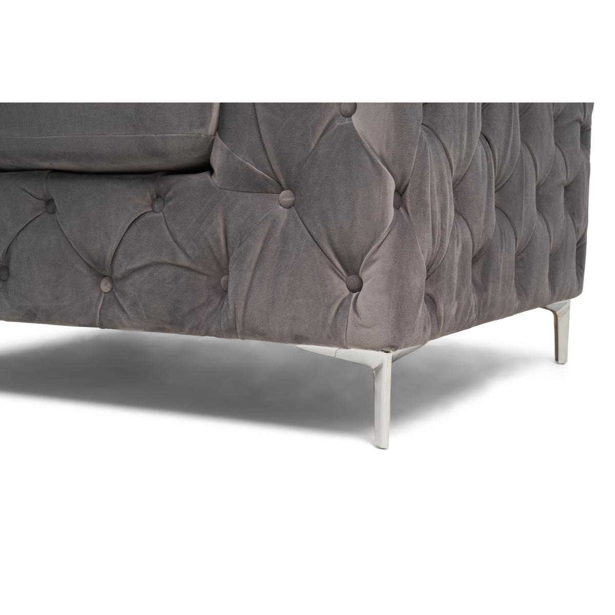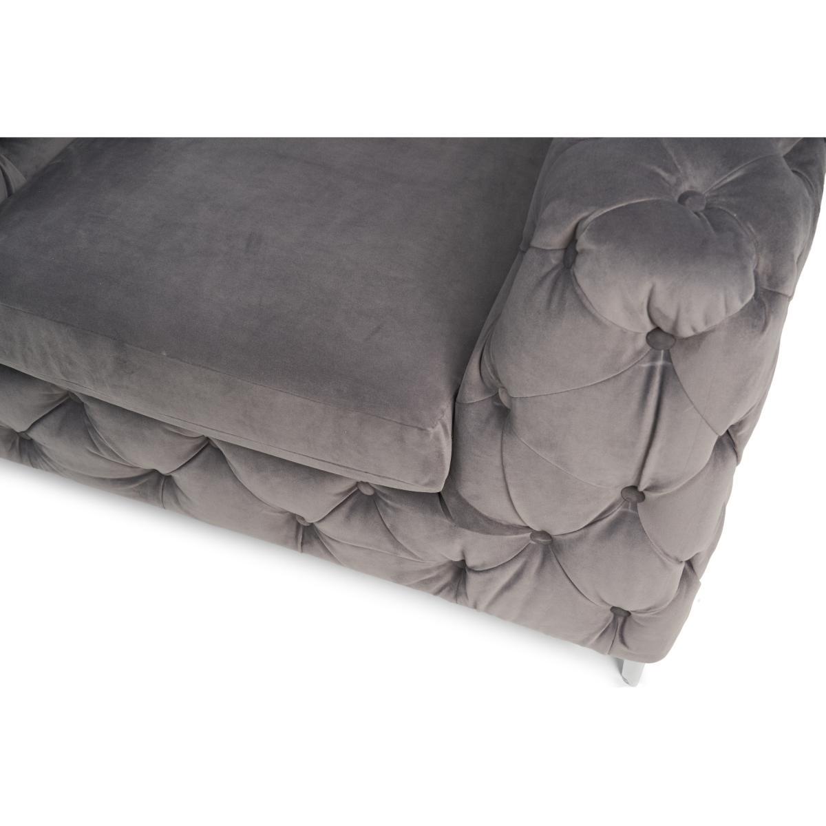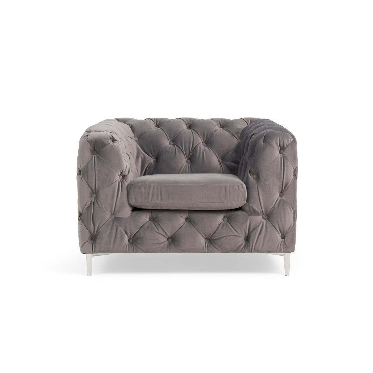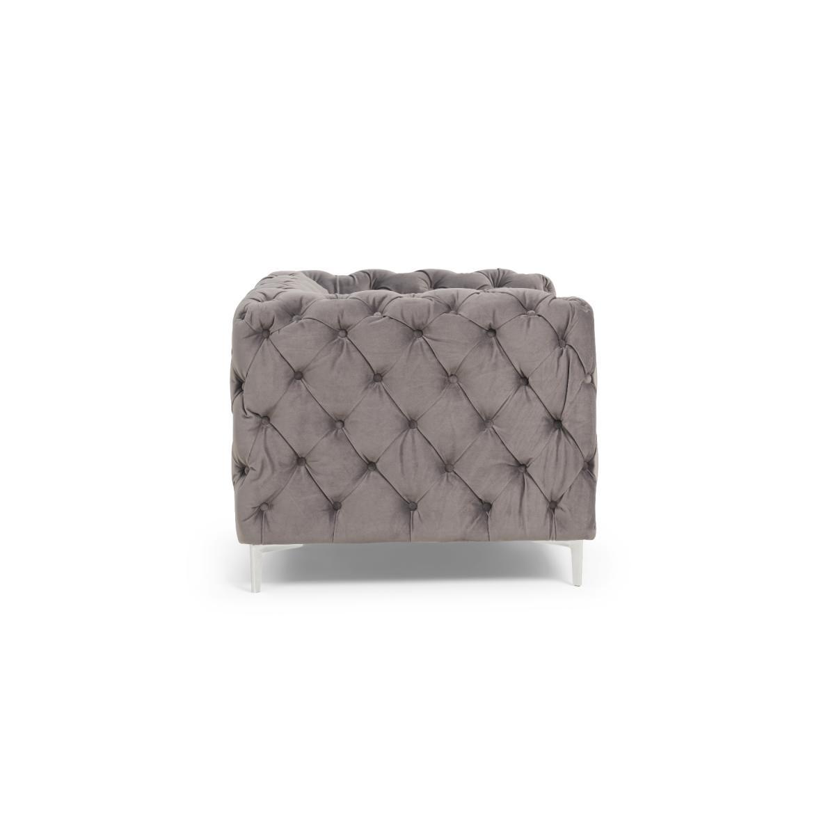 The Amara Grey Velvet Armchair makes a stylish statement. With soft velvet and a stunning deep buttoned design, the grey armchair features a comfortable deep-filled seat cushion and sleek metal legs. Stylish and comfortable armchair. Luxe, soft-touch grey velvet Elegant deep buttoned design. Foam filled seat cushion for a comfortable sit. Sleek metal legs complete the look*This armchair comes with 1 free scatter cushion. Additional Measurements:Seat Depth:60cm. Seat Width:60cm Seat Height:10cm Armrest Width:20cm Backrest Height:30cm Floor to Seat Height:45cm Leg Thickness:2cm