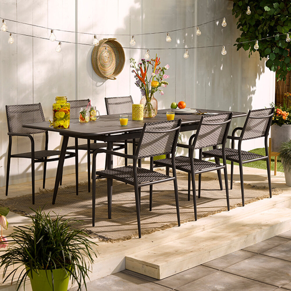 Unexpected guests? Not a problem. This outdoor dining table from A by AMARA is made from strong & durable powder-coated aluminium. Featuring a slatted tabletop, it extends to up to 220cm to comfortably sit up to 6 people.