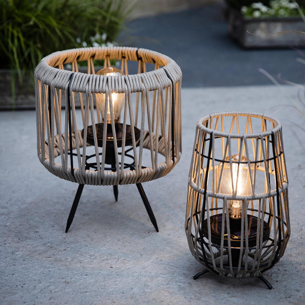 AMARA Outdoors - Solar Powered Rope Weave Round Table Lamp - Grey