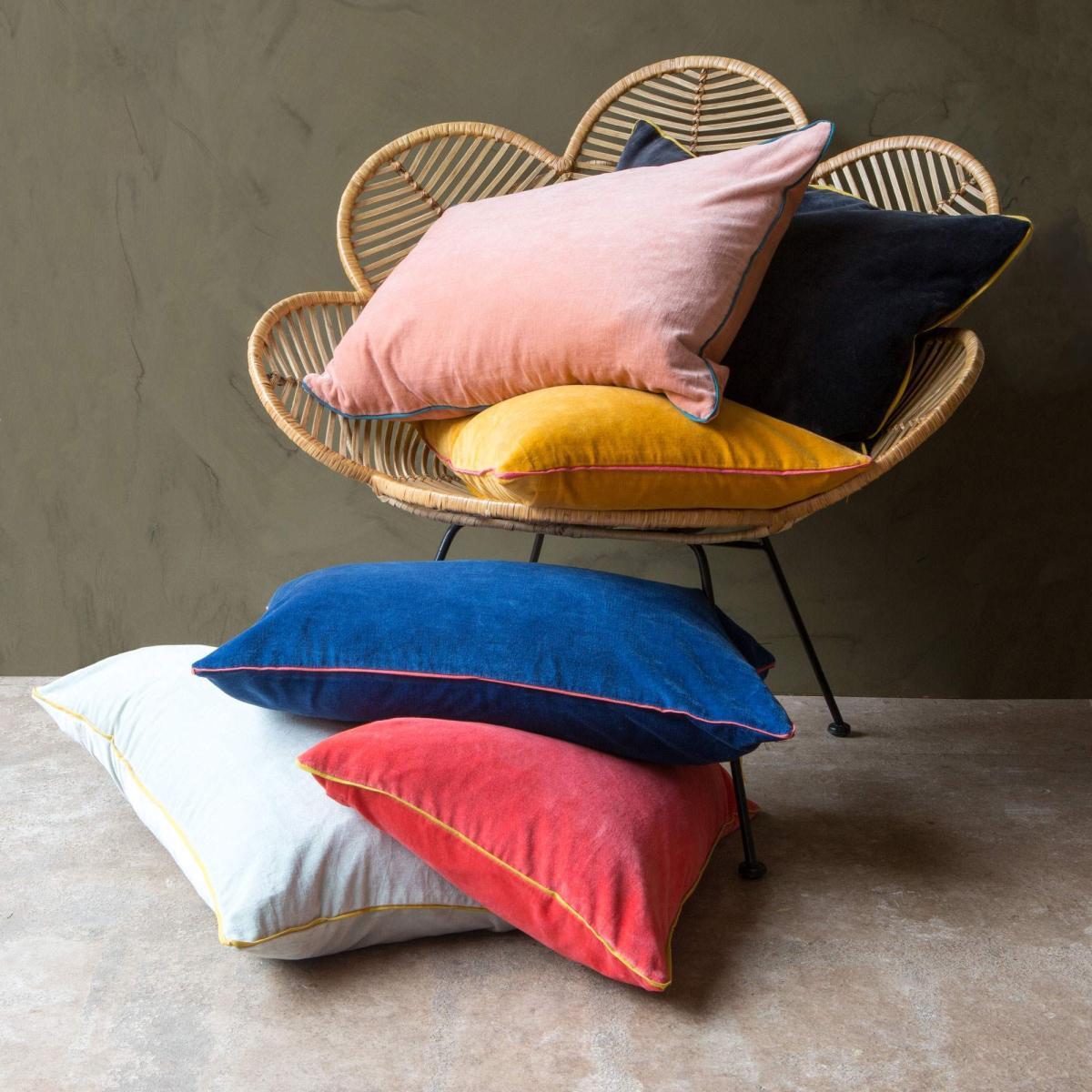 Handmade from luxurious cotton velvet with a contrasting flat fabric trim in six vibrant colours, our Amara collection combines a generous feather filling with a sumptuously soft cover to provide maximum comfort for your sofa, armchair or bed.