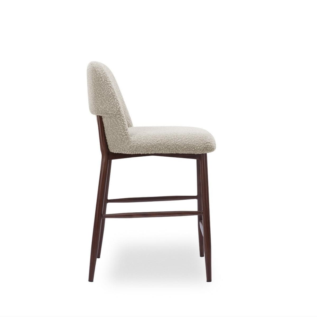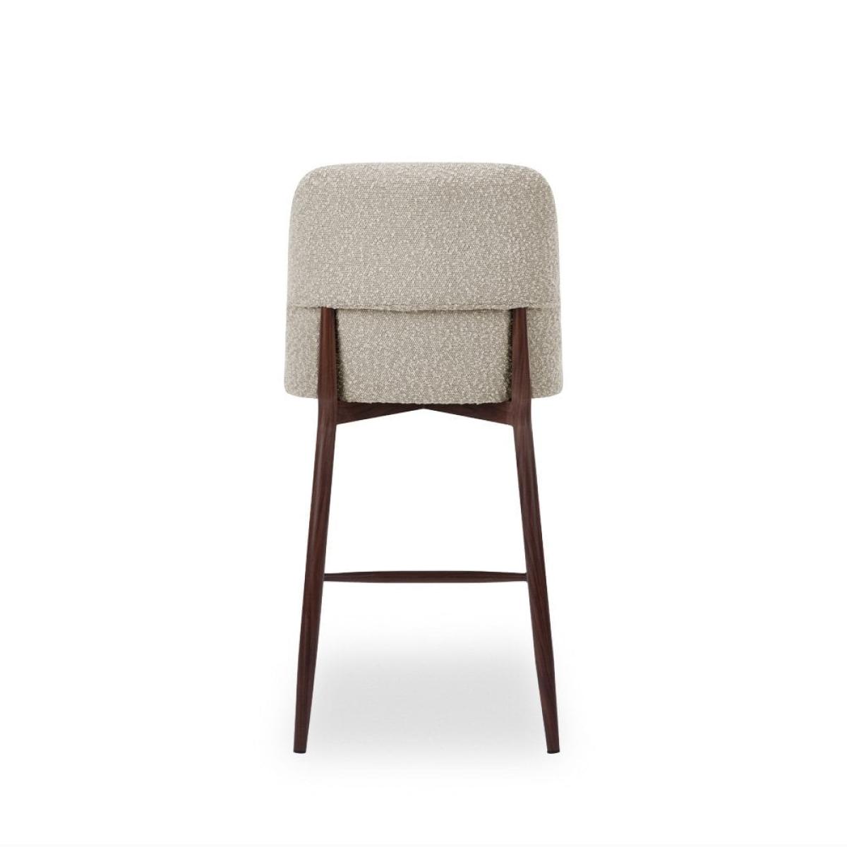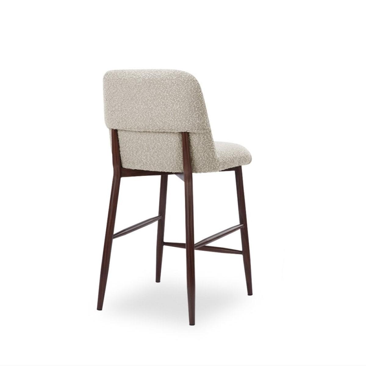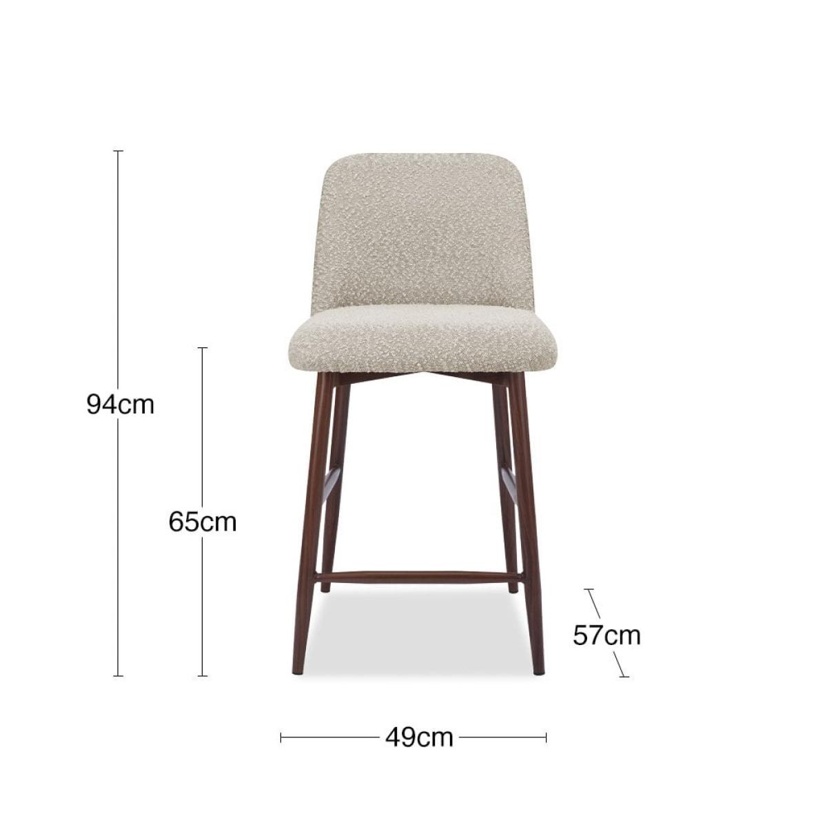The Amari Kitchen Stool blends simplicity and elegance with a contemporary edge. Featuring a tactile boucle fabric in our signature speckled stone for a luxurious yet understated look, this counter height stool combines comfort with a sophisticated design. An ideal addition to both casual and formal settings, the durable metal legs in a walnut wood finish provide a sturdy foundation while complementing this modern chic style. For a rich depth of colour and unique softness, our boucle used in this stool is not only of the highest quality but it is made from recycled PET yarns so it is kinder to the environment too.