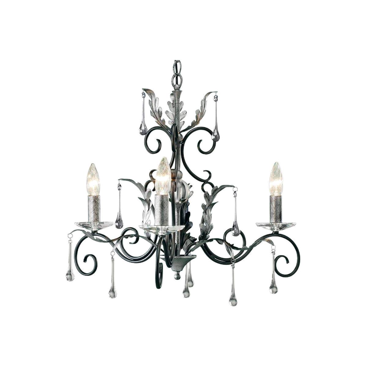 Amarilli Chandelier 3 Light Black, Silver Floral Leaves Design , E14 - Silver