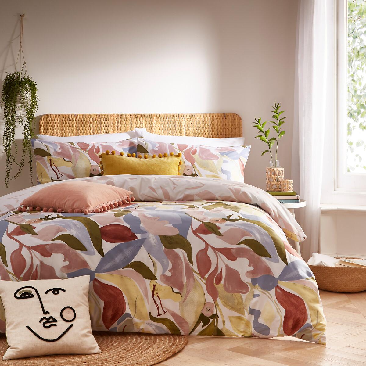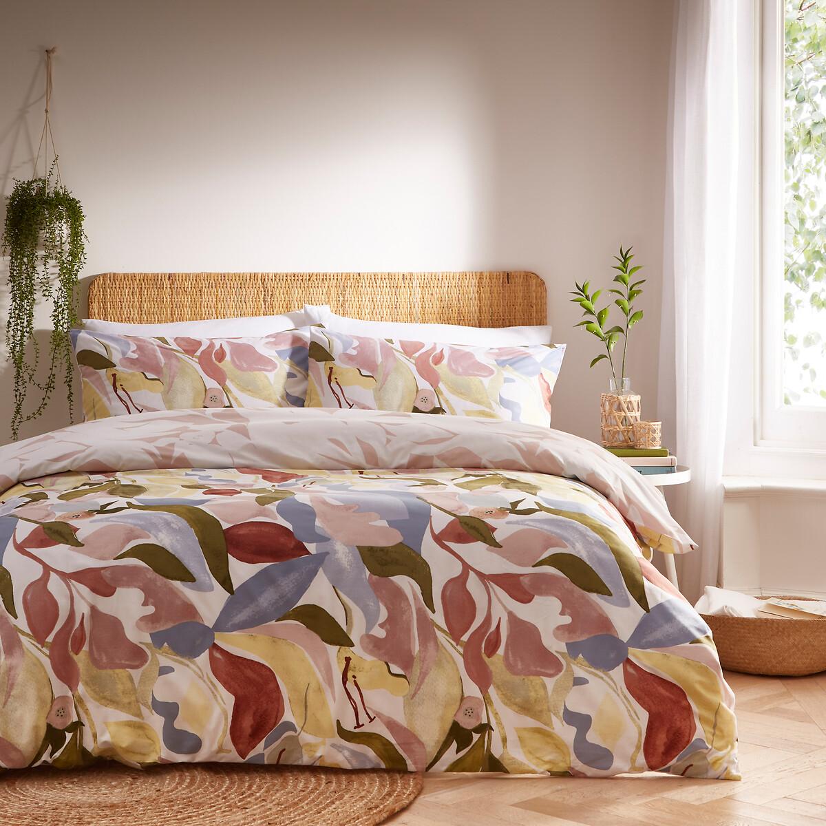 Inspired by modern, abstract floral art, this hand painted design celebrates all the beauty in watercolour brushstrokes. Blending natural clay and earth tones, to create a tranquil, peaceful take on floral botanicals. The hand-painted abstract flowing floral shapes in soft, earthy tones sweep effortlessly across this amazingly artistic duvet cover set, on a fresh white background and in a modern style. The reverse has swirling shaded outlines set on a fresh white background, if a more neutral look is required. An effortless addition to your home bedding collection. Composition: 50% Cotton 50% PolyesterWash/. Care Instructions:Machine Washable (30 degrees max). Low Tumble Dry. Cool Iron. Do Not Bleach. Do Not Dry Clean. Sizes available: Single (137x200), Double (200x200), King (230x220), Super King (260x220).Please note that the Single Set comprises of a Duvet Cover and 1 pillowcase, the Double, King and Super King all come with a Duvet Cover and 2 Pillowcases. This product will be dispatched by one of our trusted suppliers. You’ll be contacted by their selected courier about your delivery.