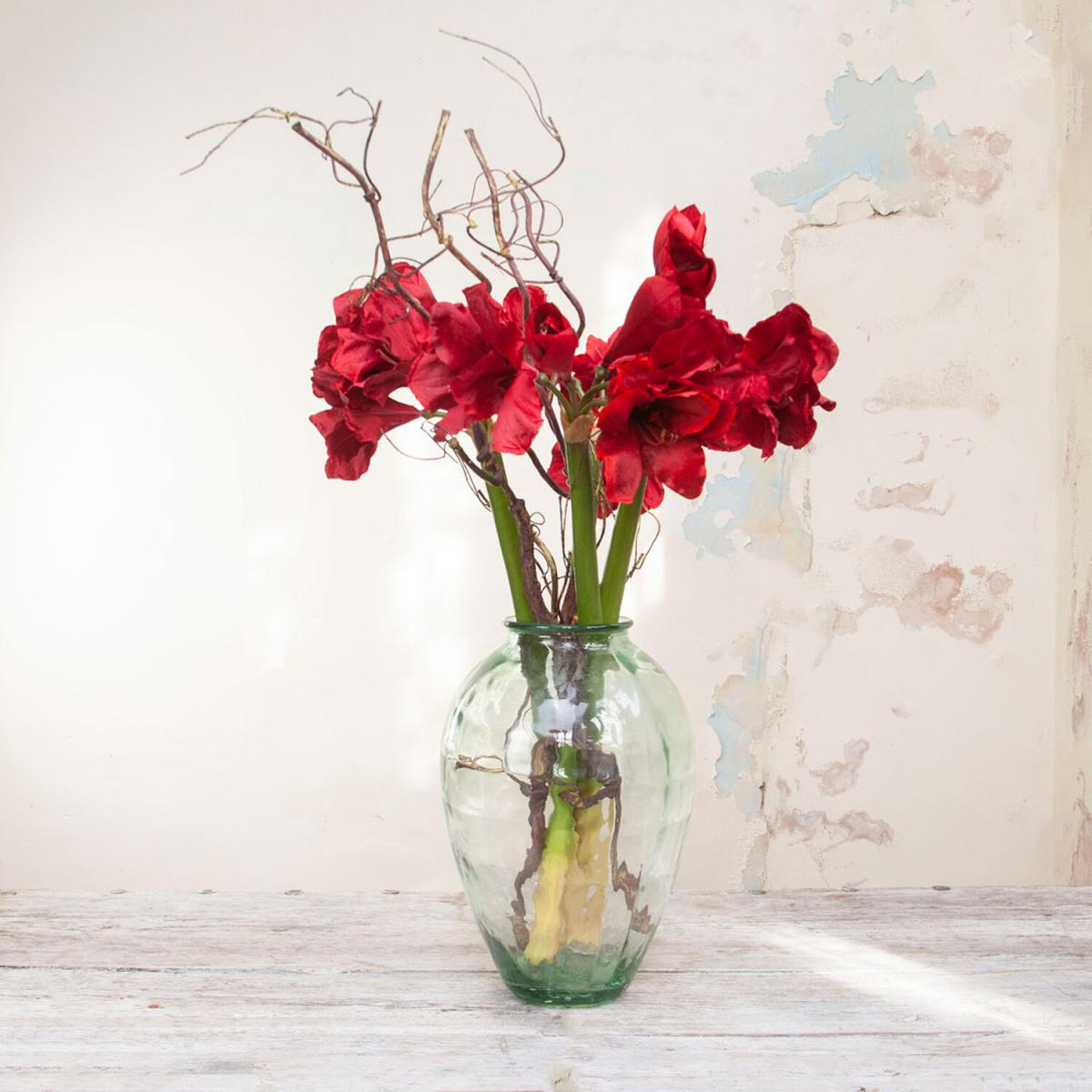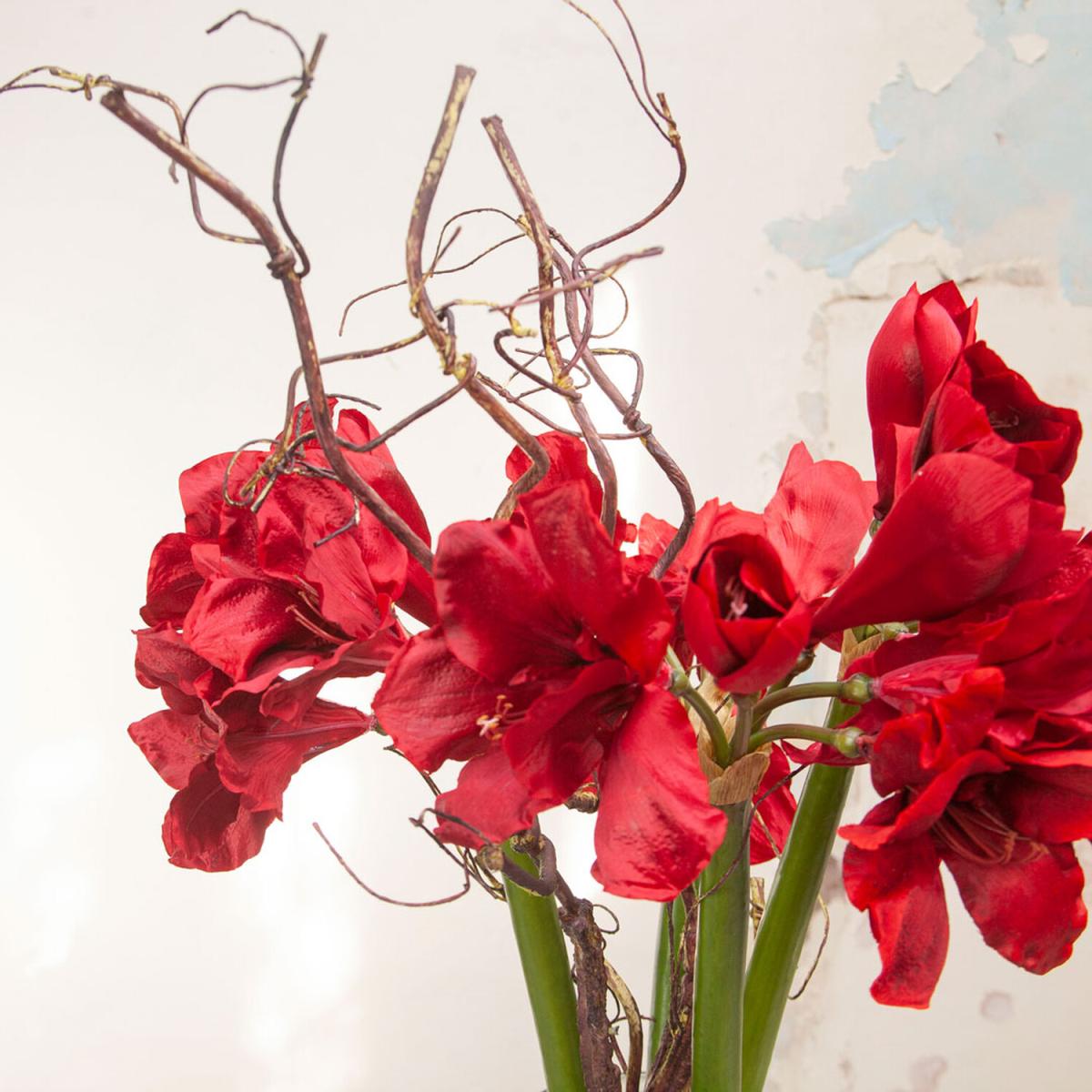 Amaryllis Bouquet with Four Long Stems of Amaryllis in a Vase by Peony - Vibrant red with natural green stems