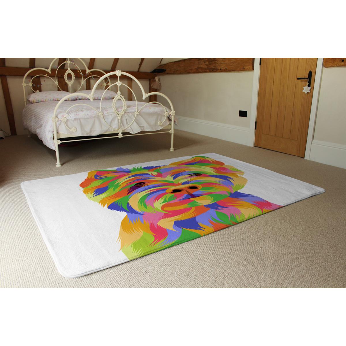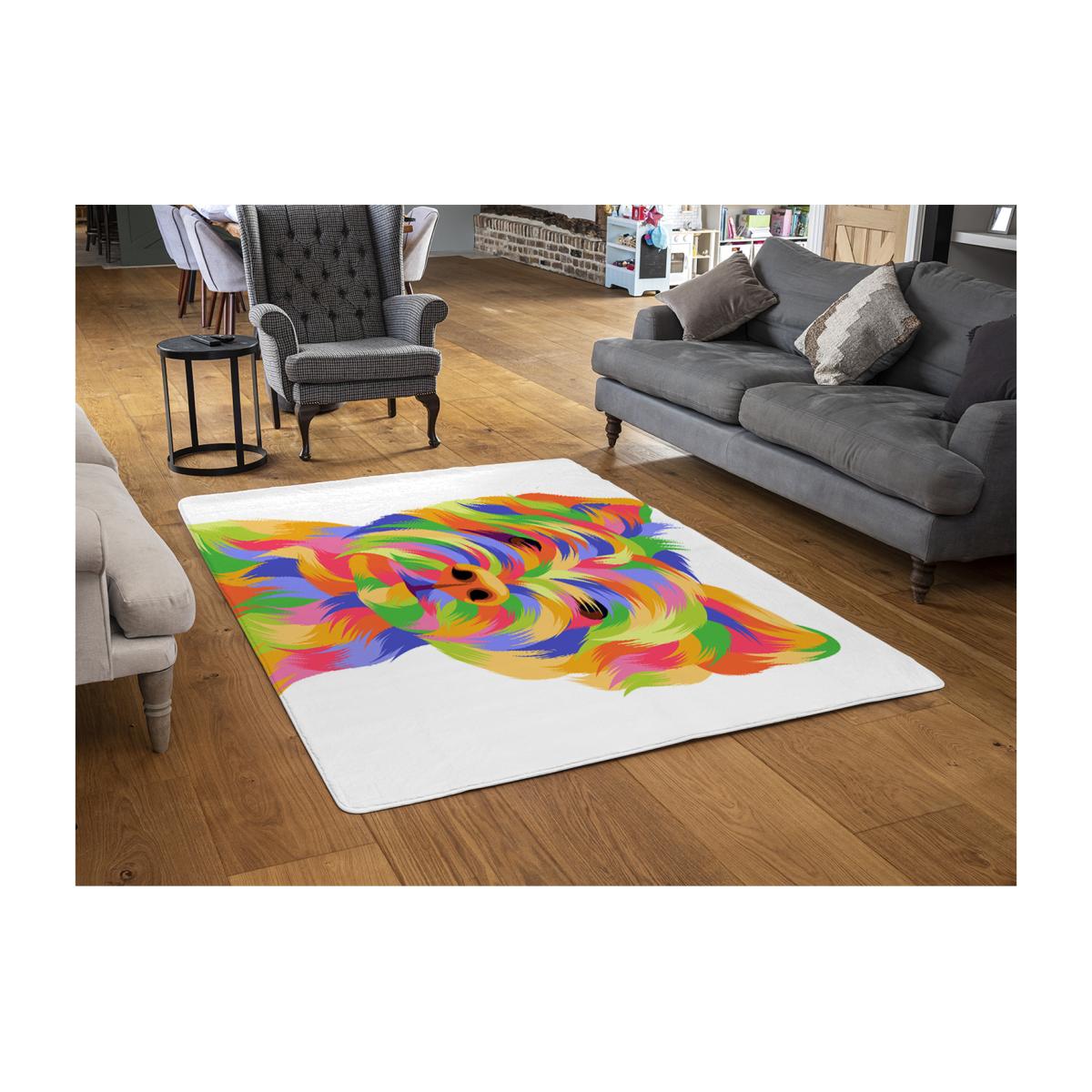 This yellow dog-themed rug is a great way to add a playful and modern touch to a room. I love how the vibrant colours can brighten up neutral interiors, making it especially suited for contemporary or eclectic styles. It works well in living rooms, bedrooms, or even a children's play area, where you want to inject a bit of fun without overwhelming the space. Practical styling tips include pairing it with minimalist furniture to let the rug stand out, or adding some colourful accessories that pick up the hues in the design. Its size is versatile for defining a seating area or anchoring a corner, making it both decorative and functional.