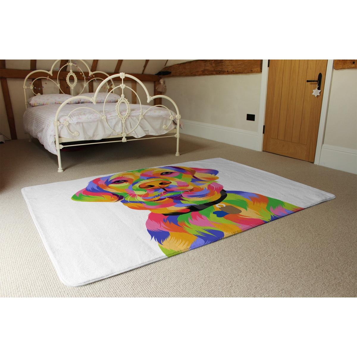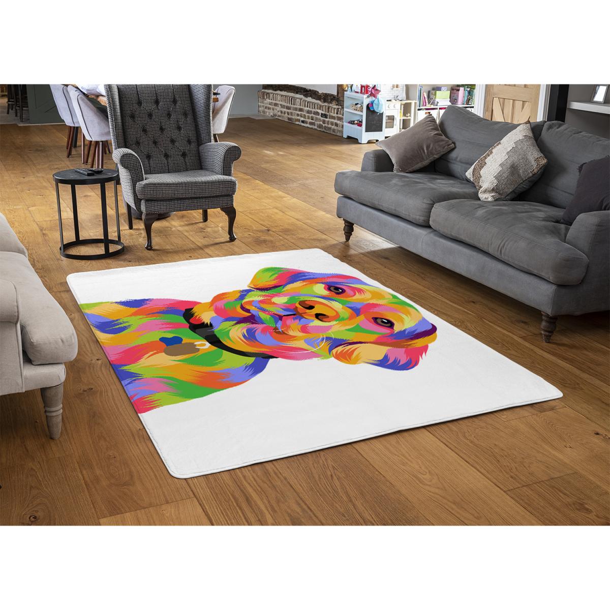 This pop art dog rug is a vibrant statement piece that instantly adds energy to any space. I love how it combines bold colours with a playful design, making it ideal for modern or eclectic interiors. It works particularly well in living rooms or bedrooms that embrace colour and personality, or as a focal point in a minimalist setting to inject a fun vibe. Practical styling tips include pairing it with neutral furniture to let the rug stand out, or layering it with other colourful accessories for a curated look. Keep in mind its smaller size, making it perfect for defined areas or as an accent piece rather than a large central rug.