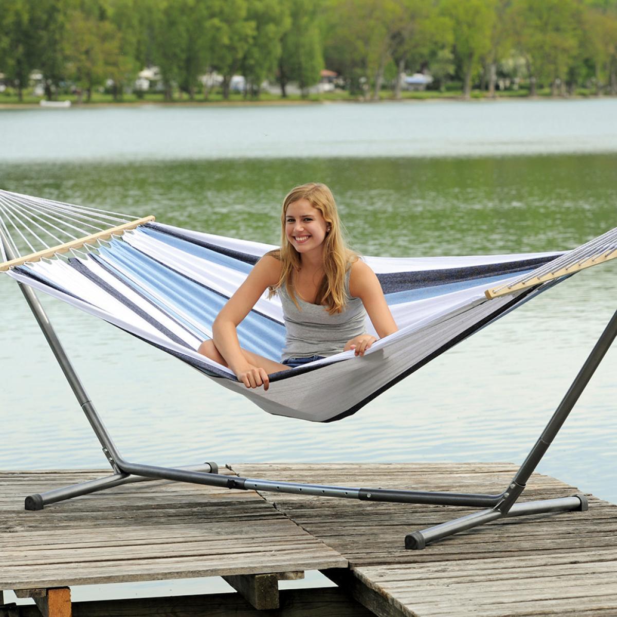 While away the hours with this Sumo Rock Stone hammock stand from Amazonas. Designed to be used with all smaller sized Amazonas hammocks (with a total length of 270-320cm), this stand is crafted from steel with the brand’s special Rock Stone coating which is scratch resistant. With an adjustable base, it is also easy to assemble without any tool and is perfectly placed in a garden or on a patio to enjoy the sunshine.