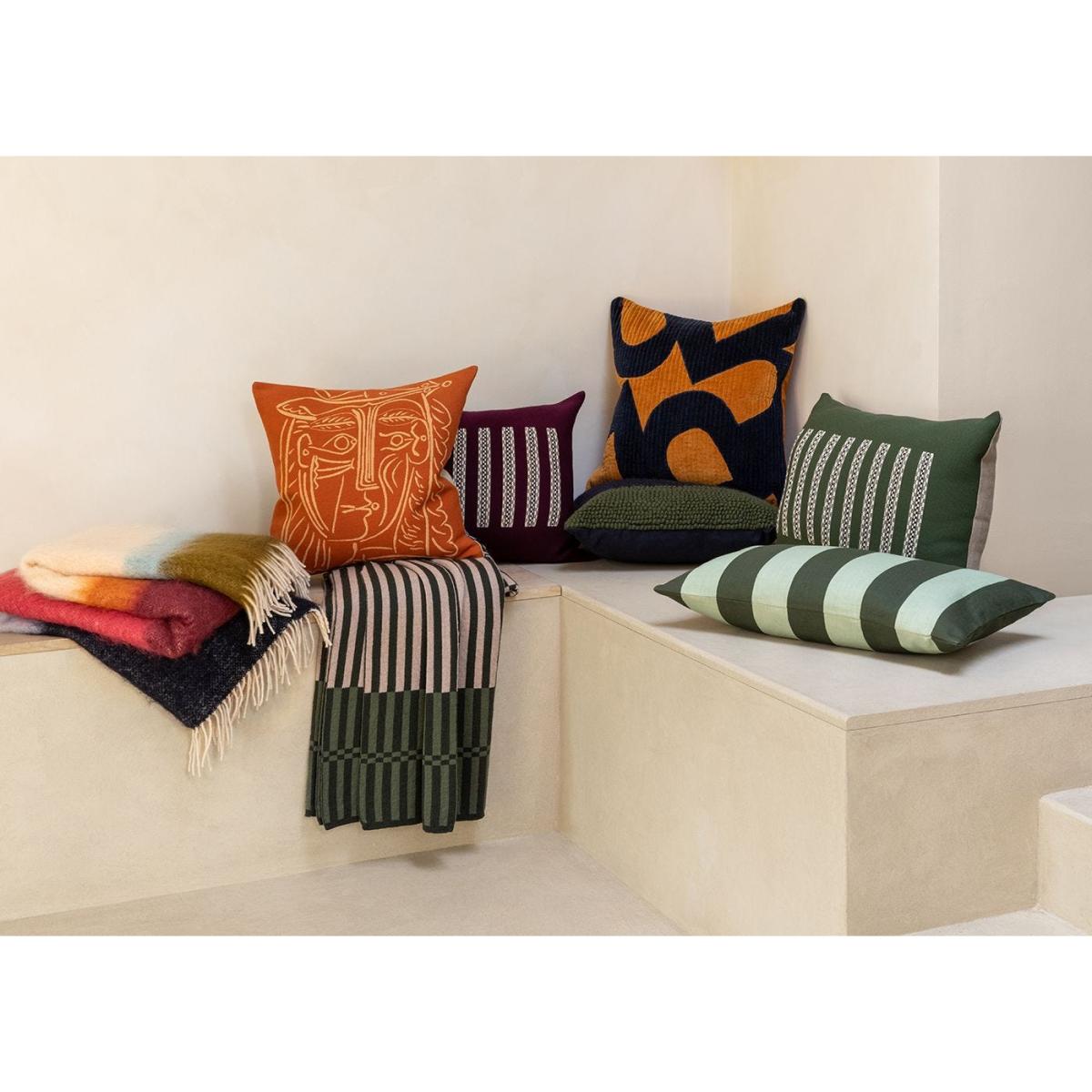 Introducing the Heal's + Ambar collection, an exclusive range of cushions and throws inspired by traditional textile techniques and designer Natalia Nicolau's fashion background. Meticulously crafted in the UK, this collection features a bold frame square cushion in green, two rectangular embossed cord cushions in green or purple, and a check stripe throw in green. Each piece is uniquely knitted to create luxurious, standout items perfect for adding a touch of elegance and sophistication to any living space. Embrace the blend of tradition and contemporary design with these distinctive home accessories.