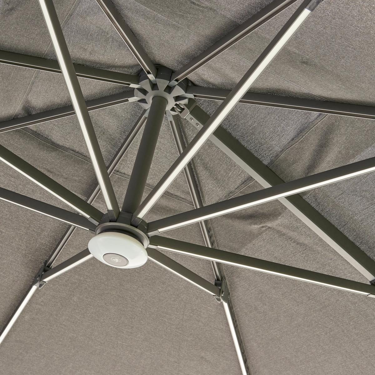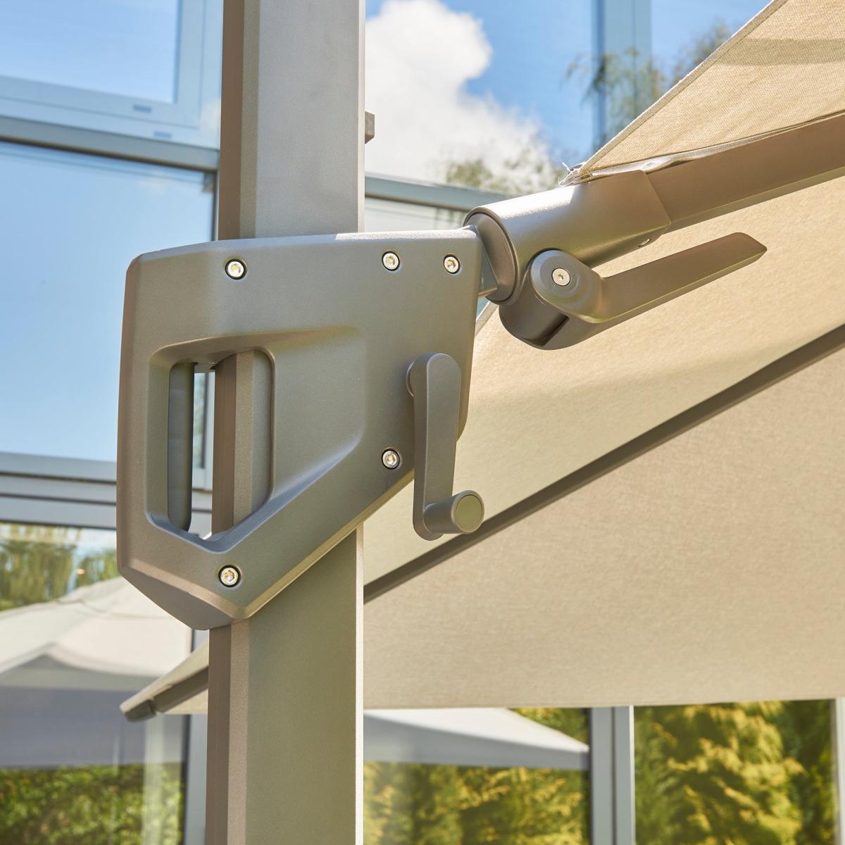 Perfect for keeping you shaded from the Summer sun, this Ambassador Parasol is simple yet stylish. With full rotation and an easy action handle tilt system, this parasol is easy to use. This cantilever parasol boasts a luxury novasun canopy, ideal for adding a sophisticated look to your garden. This parasol has additional LED lights for a unique touch. Please Note: Parasol Bases and Covers are not included and are sold separately.