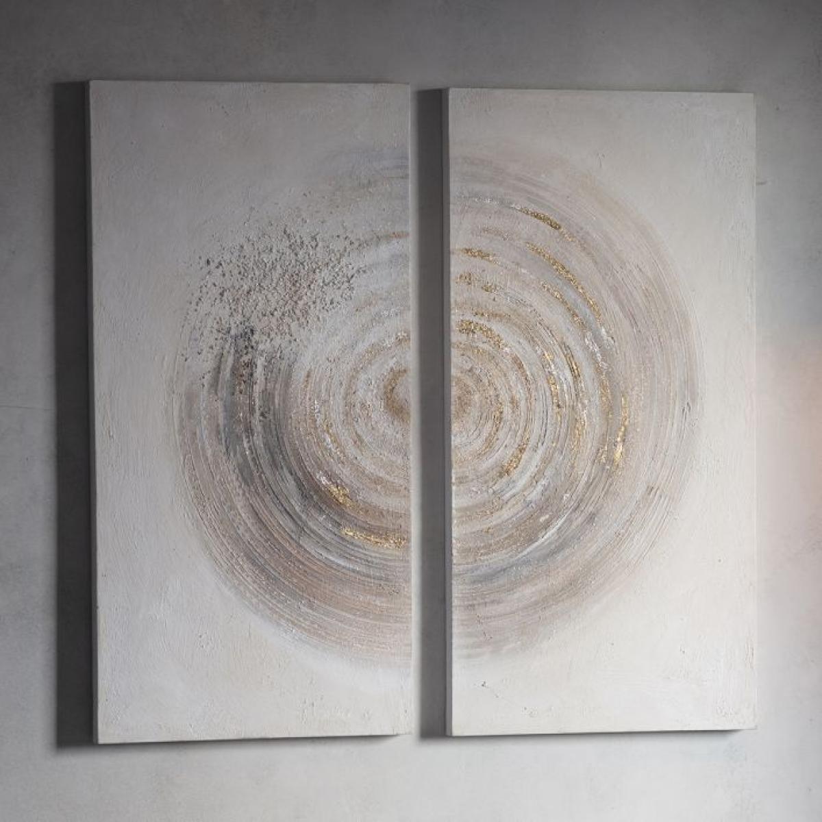 Contemporary and stylish, these two vertical canvases create a serene spiral when hung together. Orientation: Square. Fixing Type: D-Ring. Framed:No. Colour: Natural.