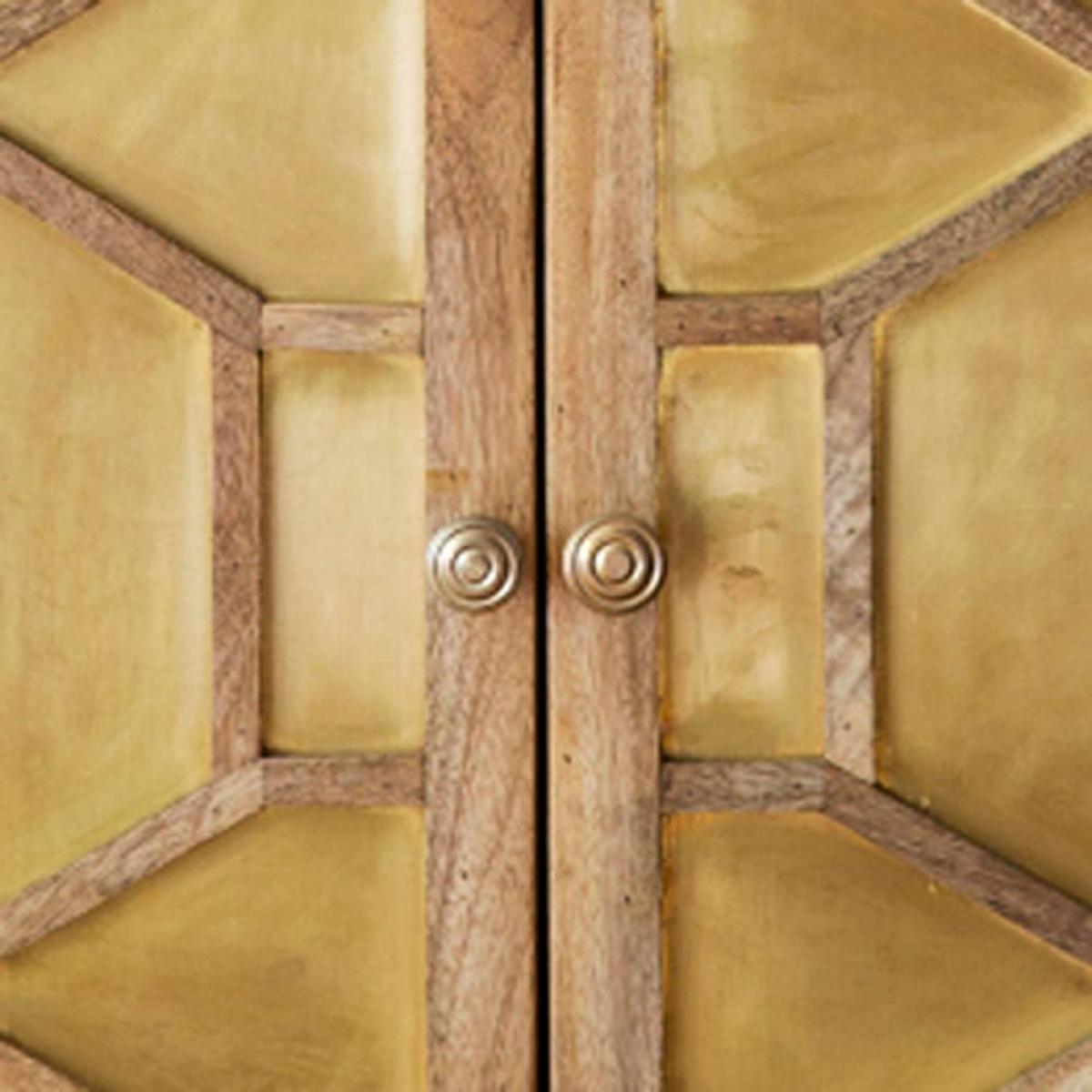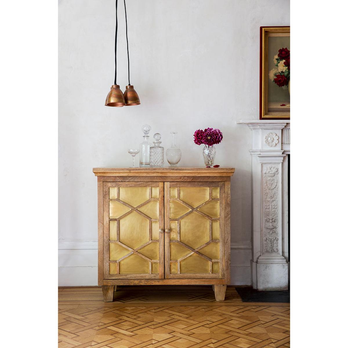 Storage doesn't have to be boring with this timeless art deco style sideboard with middle shelf for maximum storage capacity. Made using rich grained mango wood inlaid with brass sheeting.