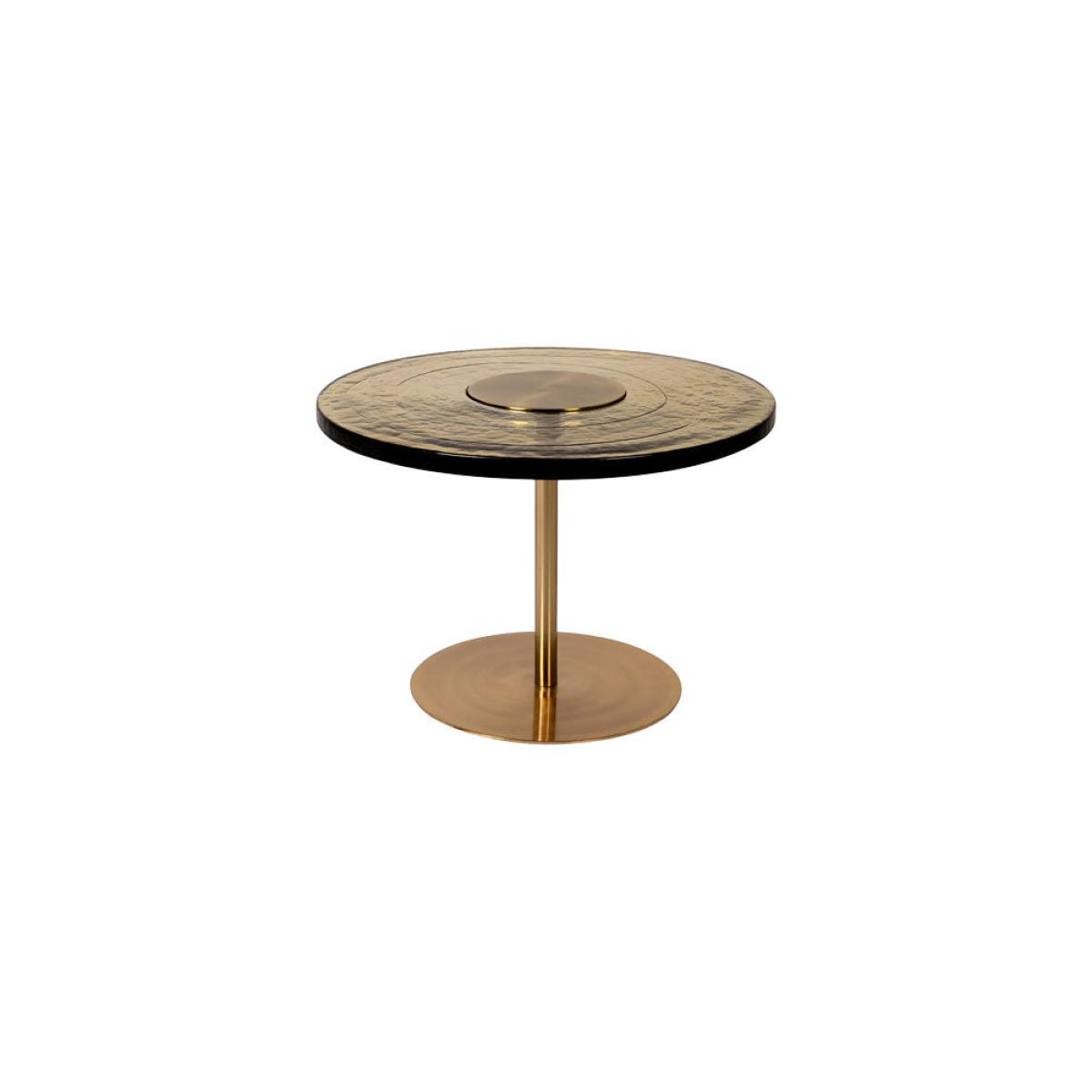 A gorgeous example of how colourful glass can lift your interior, the Amber Glass Coffee Table introduces a modern take on statement seventies glamour! With an organic textured glass top and brushed brass frame, what’s not to love?! Celebrating nostalgia for iconic 70s pads in the hills of Hollywood, this chic round coffee table would not look amiss on the set of the epic interiors in Daisy Jones & The Six. Perfect for smaller living spaces, this coffee/side table hybrid ensures you won’t have to compromise on style when floor space is limited. Plus, there’s still plenty of space for your morning cup of coffee, a stack of design books and a plant so you can flex your styling prowess. A beautiful modern coffee table that adds effortless glamour to any setting, we recommend finding a spot bathed in natural light to watch golden reflections dance around the room throughout the day. - Round glass coffee table - Amber glass and brushed brass finish - Measures: H42.5cm x Dia.61cm - Can be styled as a round coffee table or side table