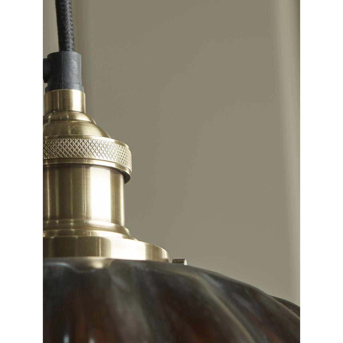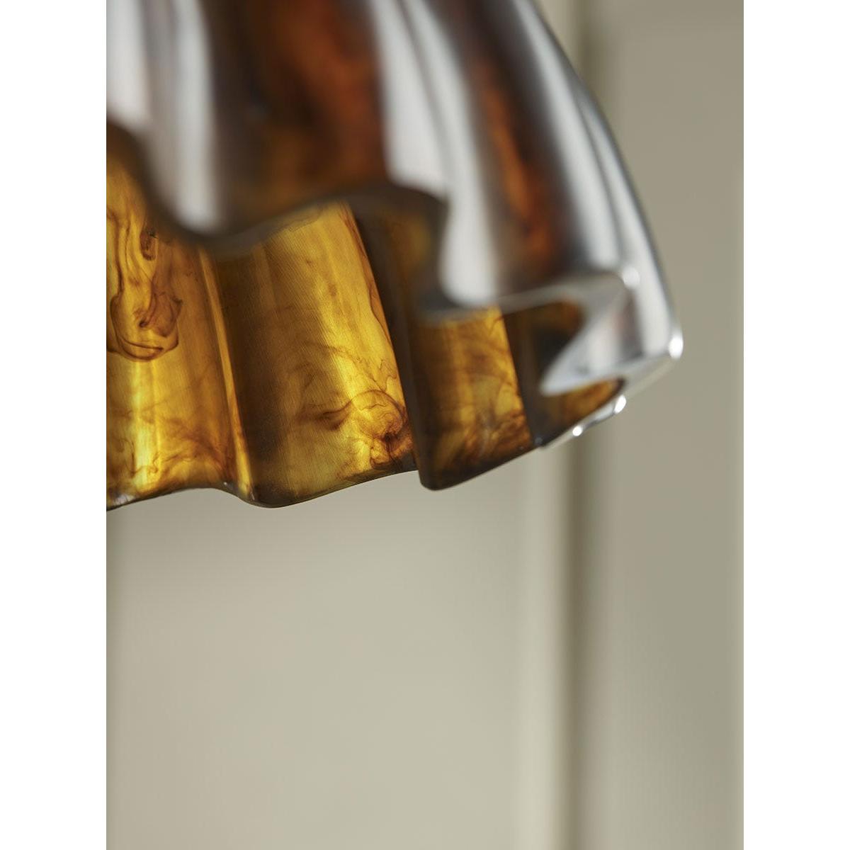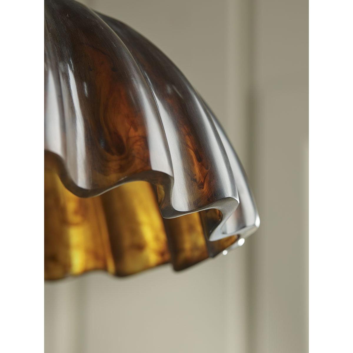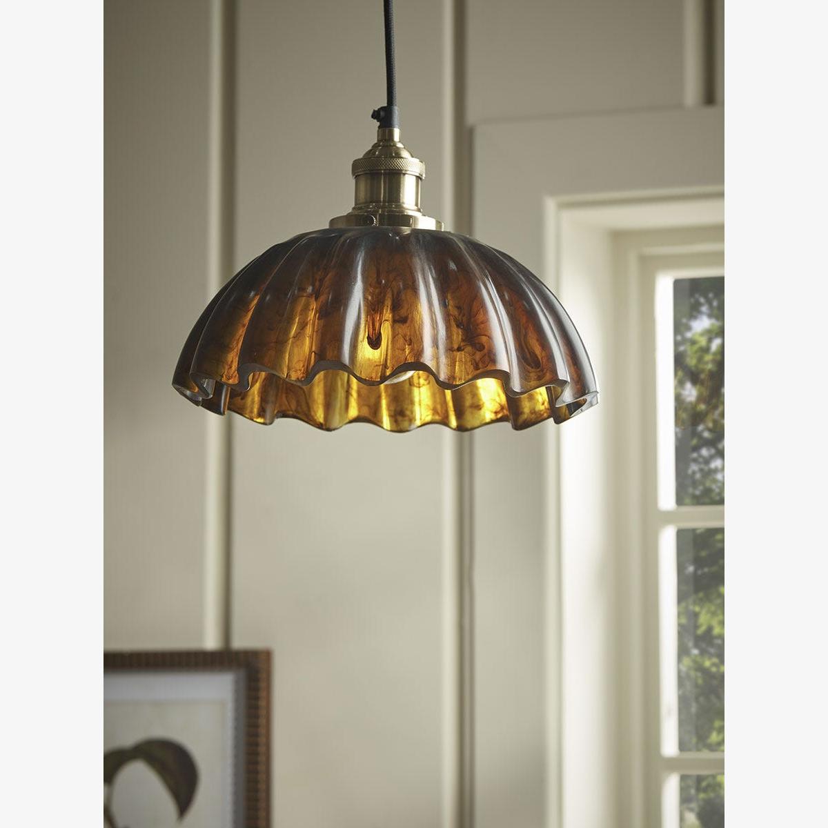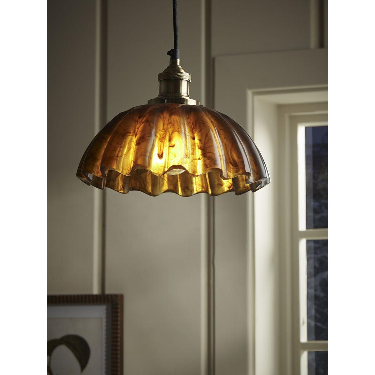 Full of old world character, our Amber Scalloped Pendant makes a charming addition to any room.  The decorative brass fitment has an antique finish and hangs from a smart black fabric flex. The shade is bowl shaped with fluted sides and is made from resin with a tortoiseshell effect design. Discover how to create the perfect lighting scheme for your home using our Lighting Buying Guide.