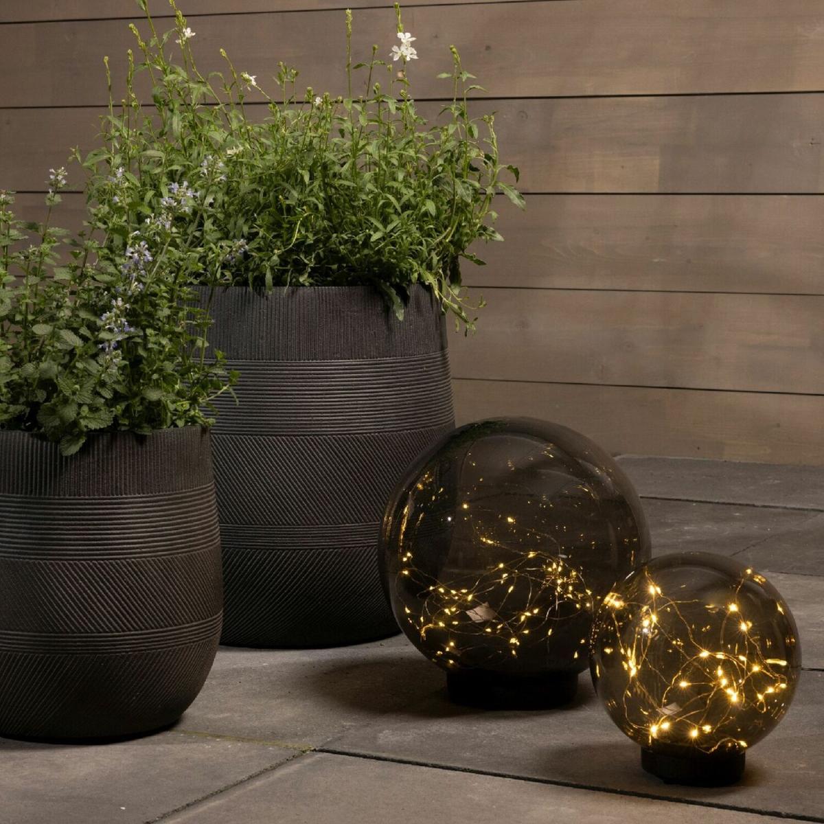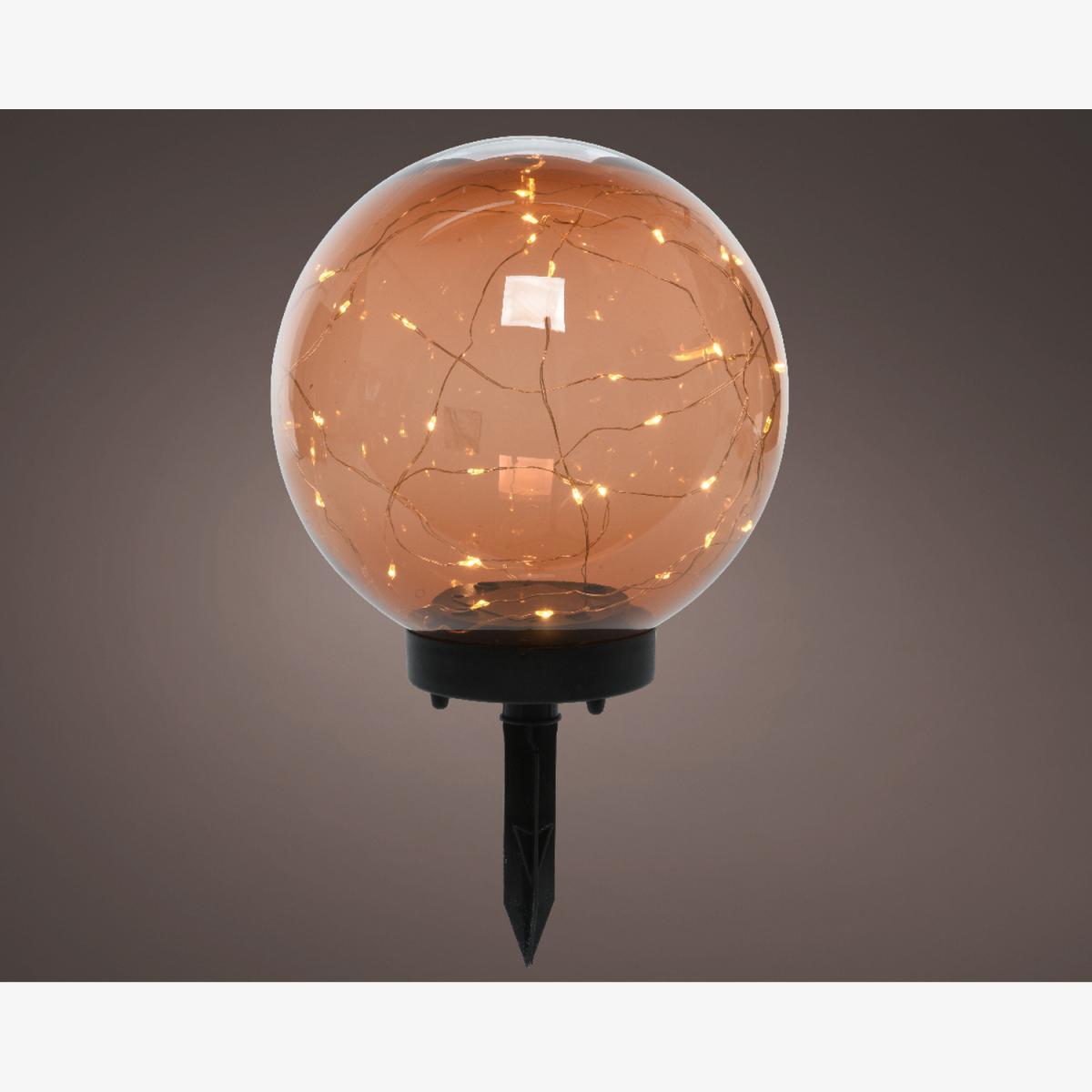 Create a modern warm and welcoming atmosphere to your outdoor space with this clever 2 in 1 garden globe solar light. The globe is designed so it can be used as a stake light or simply to sit on the ground or a tabletop surface. Filled with 50 micro LED wire lights, the globe will give up to 6 hours of active light once charged with its built in solar panel on the inside base of the globe. Its solar function once switched on at the base, will automatically light us at dust without the need for batteries or a plug. An eco friendly way of lighting up your garden!The 30cm amber coloured plastic globe will add real character and feature to your garden or patio area. The modern classy design will make the globe light perfect for creating a lit path way with the stake included. A simple ground light next to a planter or water feature. Or even a table top light to use during an evening meal or BBQ with family and friends. Images for illustration purposes only # The colour of the globe is amber and not smoked grey.