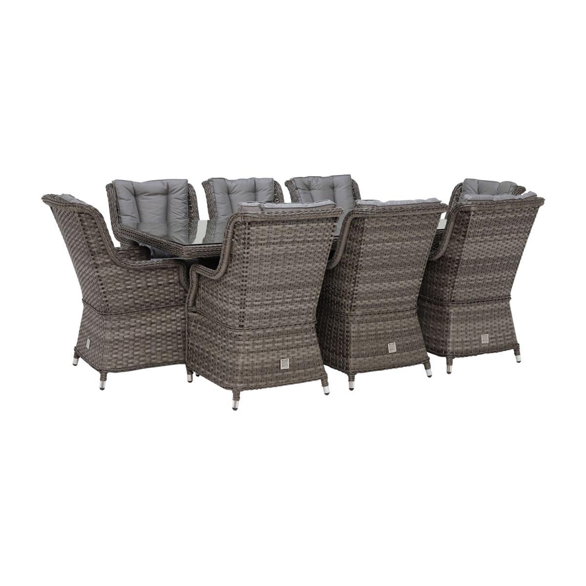 There’s nothing more frustrating that not being able to seat all your guests, however, with cosily padded (and not to mention stylish) seating included in this stunning Amberley set, up to 8 can enjoy outdoor drinks and dining all summer long. Neat rattan weave in a sleek grey tone beautifully complements the cool grey of the Amberley’s plump cushions to add modern sophistication to a range of outdoor spaces, while a practical tempered glass table top makes clean up even easier.