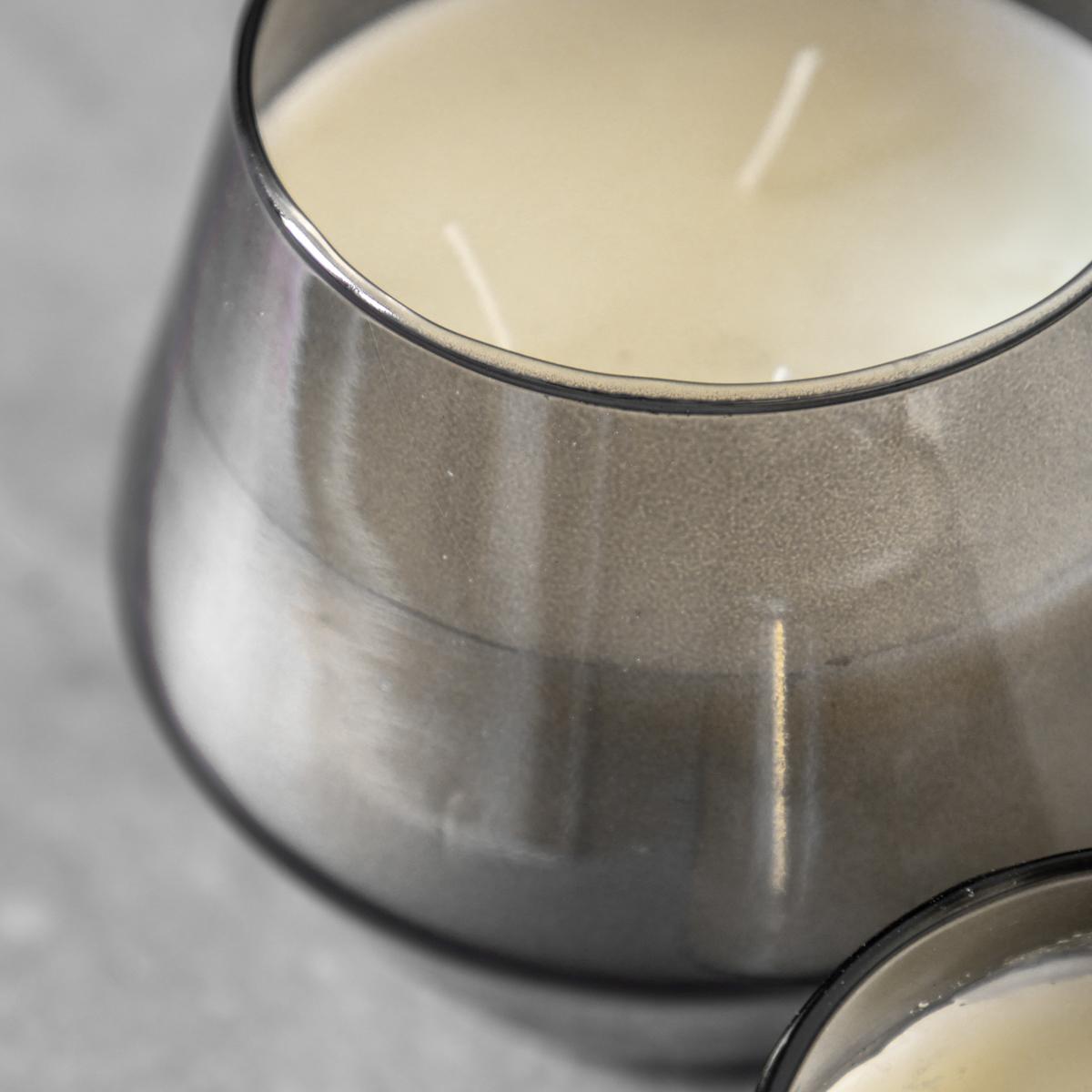 Transform your space with the warm glow and enchanting aroma of the Ambience Glass Candle. Encased in a smoke black glass jar, this candle combines timeless design with the luxurious sent of Black Tea and Bergamot. The small candle burns for 14 hours and the large candle burns for 27.5 hours.