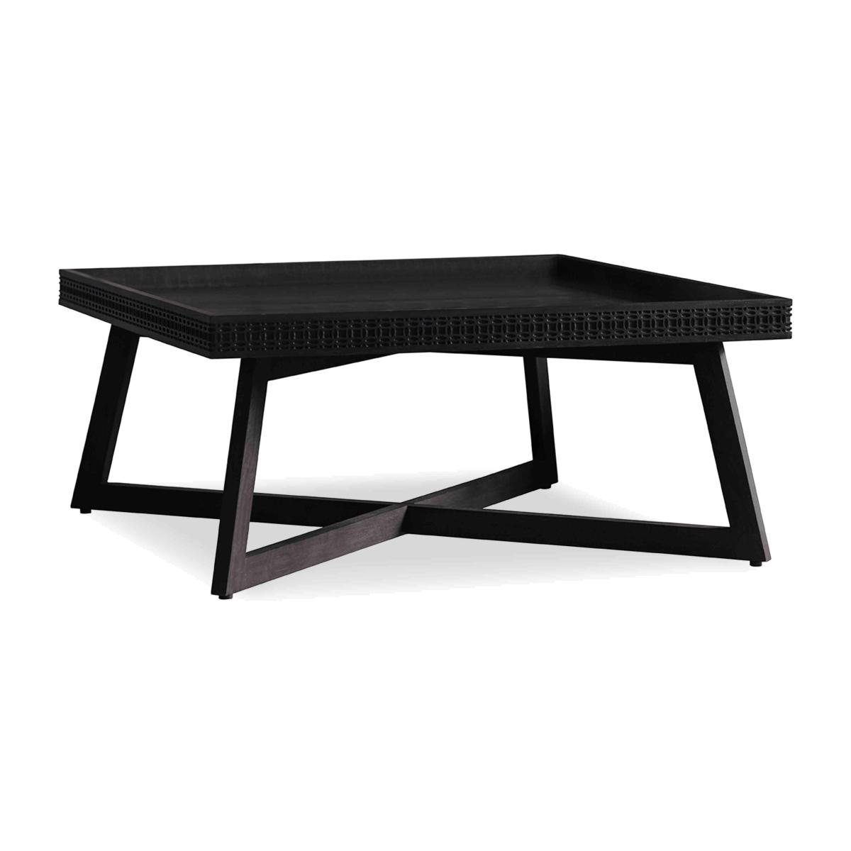 Carefully crafted with teak, mahogany, mindi ash and mango wood veneers and embellished with intricate decorative friezes, the pieces in the Ambre range bring to mind vintage furniture from far flung places. This well-curated collection includes both bedroom and living room furniture, allowing you to enjoy its beautiful patina, matt black finish, roomy storage spaces and authentic style in more than one room. Bring a unique look to your bedroom with the range’s four-poster bed and open wardrobe, and stylish practicality to your dining room in the form of a charming drinks cabinet as well as occasional tables. This tray-style coffee table is a beautiful piece of furniture. With its gently rustic matt black wood veneer finish and intricate mango wood frieze, it’s beautiful as well as practical. Why you'll love it Beautifully detailed with a gently rustic finish that suits eclectic spaces. Inspired by authentic vintage Indian furniture. Tray-style coffee table keeps books, magazines and more neatly contained. Edge features an intricately patterned fretwork frieze in mango wood. Top is finished in teak, mahogany, mindi ash and mango wood veneers. Such a wide array of woodgrains creates a rich and varied pattern. Matt black finish. Effortlessly charming and coordinates well with both modern and classic pieces. This coffee table is part of the Ambre range. What you need to know We recommend using coasters and placemats at all times. Our Ambre living room range includes a wide choice of occasional furniture and tables. Love the look? Be sure to browse our Ambre bedroom furniture collection.