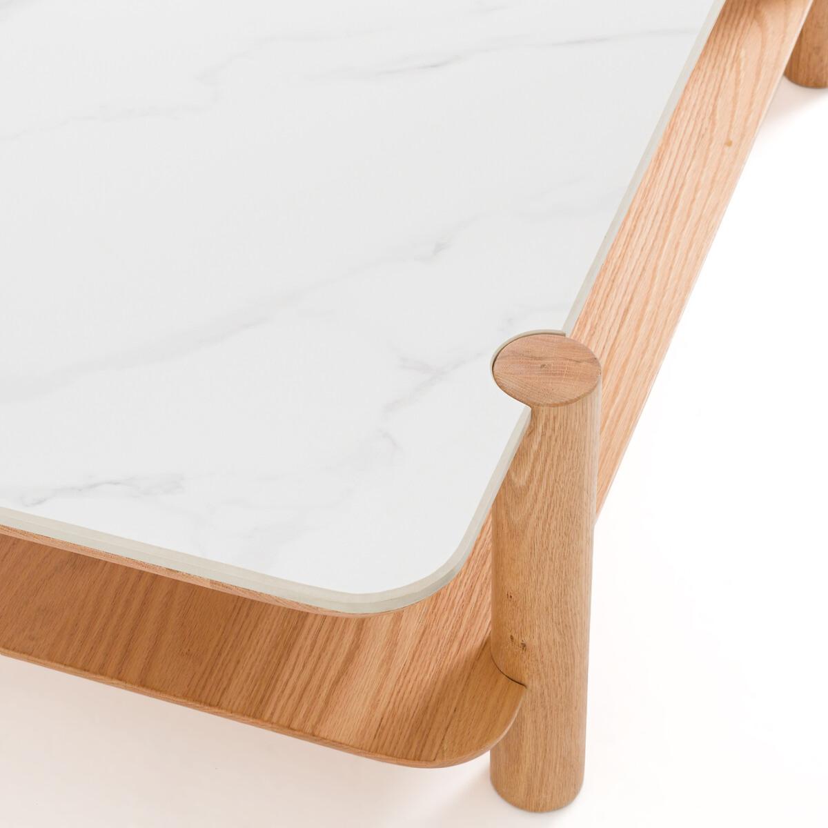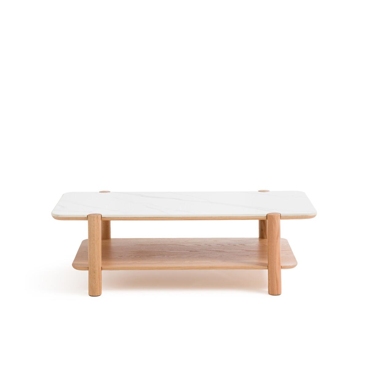 Scandinavian-inspired design, contemporary styling: the Ambre coffee table combines light wood and reconstituted marble, a more resistant and lighter material. Its rounded corners give it a softer look. Timeless furniture, easy to integrate.