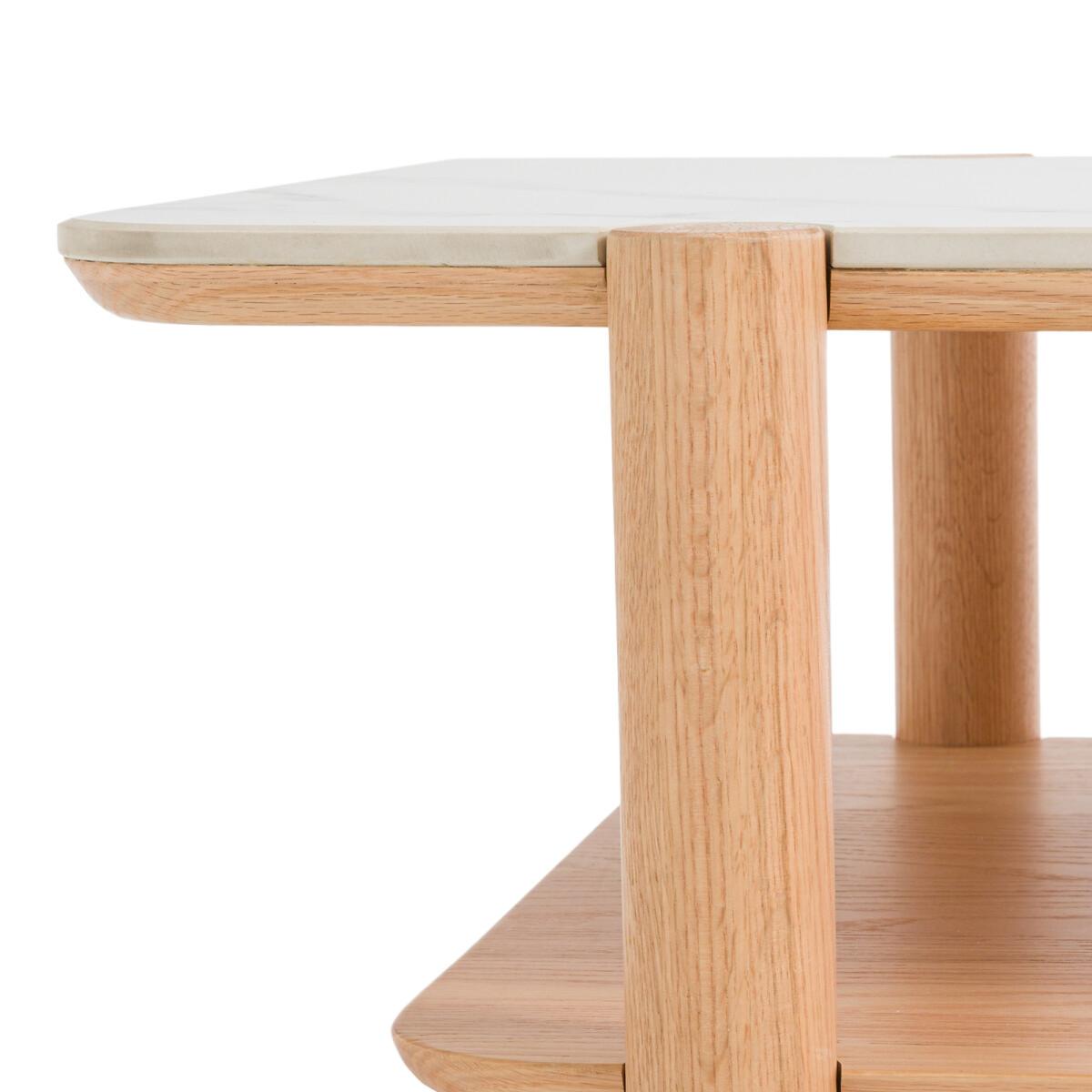 I love this coffee table for its modern take on natural materials, combining warm oak with reconstituted marble for a sophisticated yet approachable look. It works well in contemporary, Scandi, or even eclectic interiors, adding visual interest without overwhelming the space. Practical styling tips include layering it with minimal accessories-think neutral vases or books-to highlight its clean lines, and pairing it with textured textiles in your seating choices to create a balanced, inviting vibe. Its open design also allows for easy movement around the room, making it functional for everyday living and stylish for entertaining.