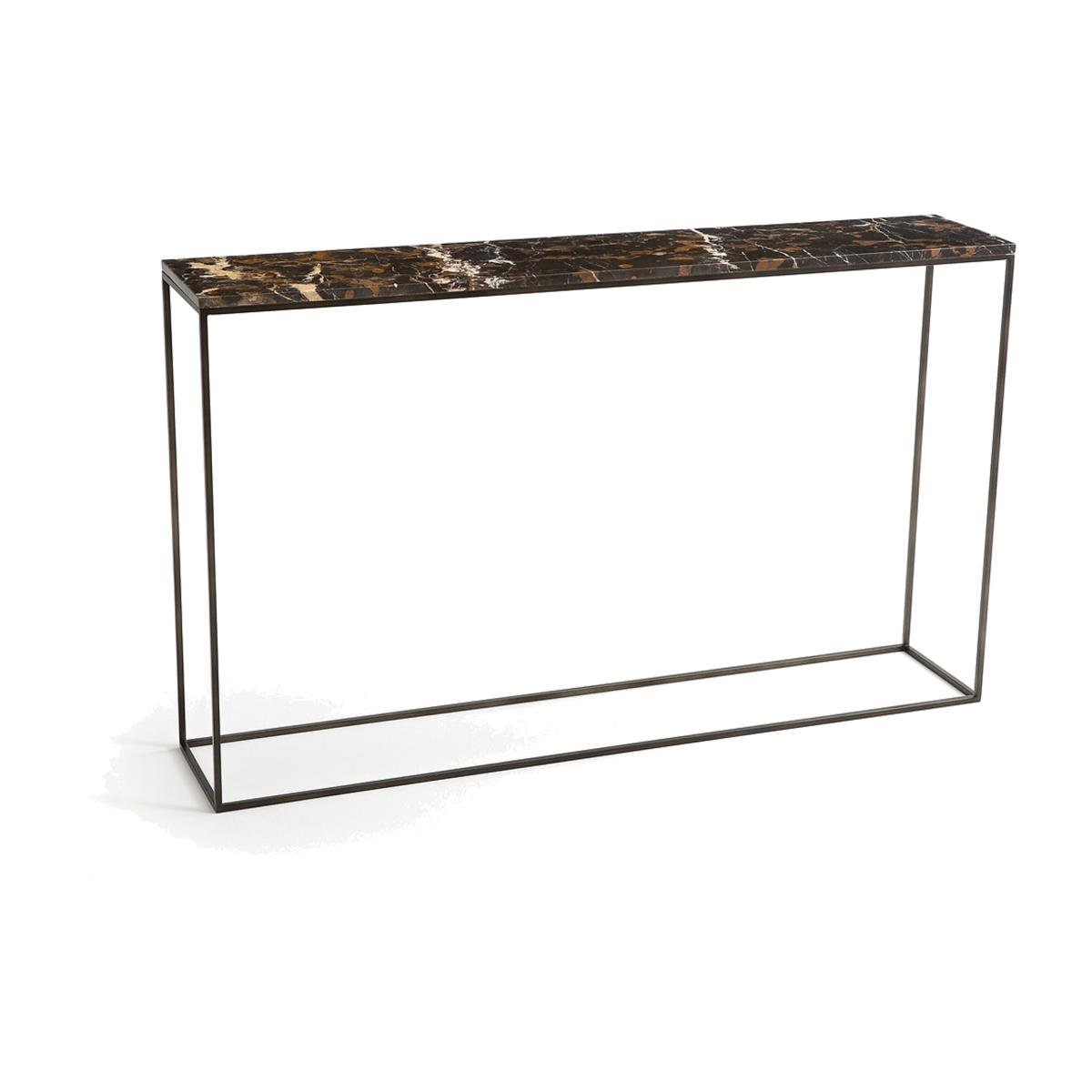 The Ambrette console table. A modern combination of amber marble and aged-effect metal. Decorative and practical, it will find its place in any room of your home.