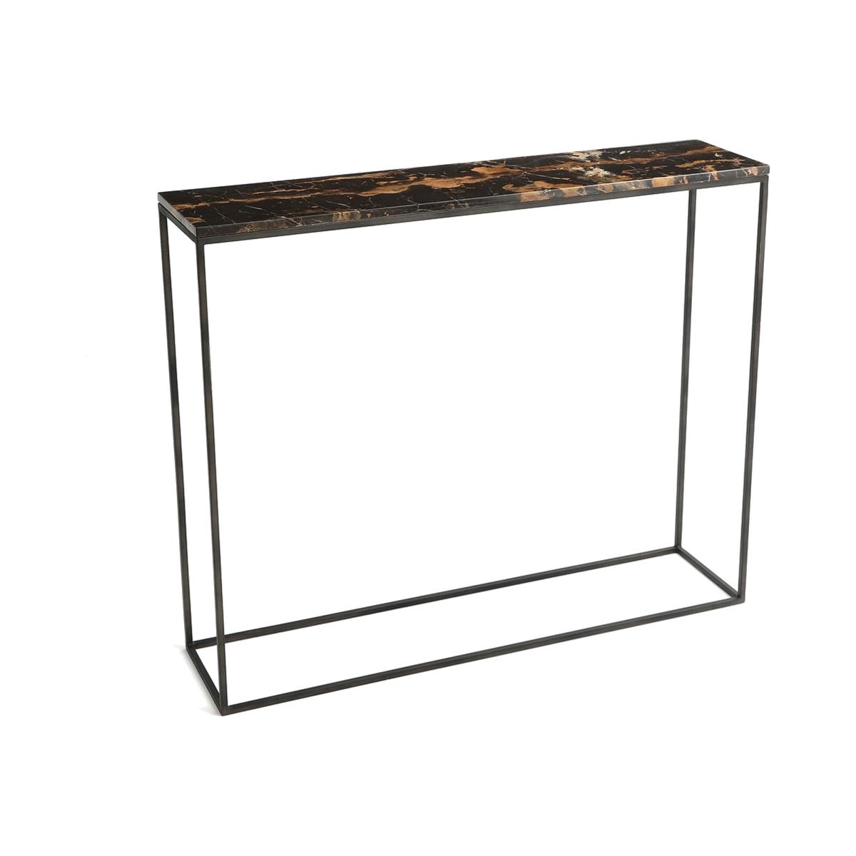 The Ambrette console table. A modern combination of amber marble and aged-effect metal. Decorative and practical, it will find its place in any room of your home.