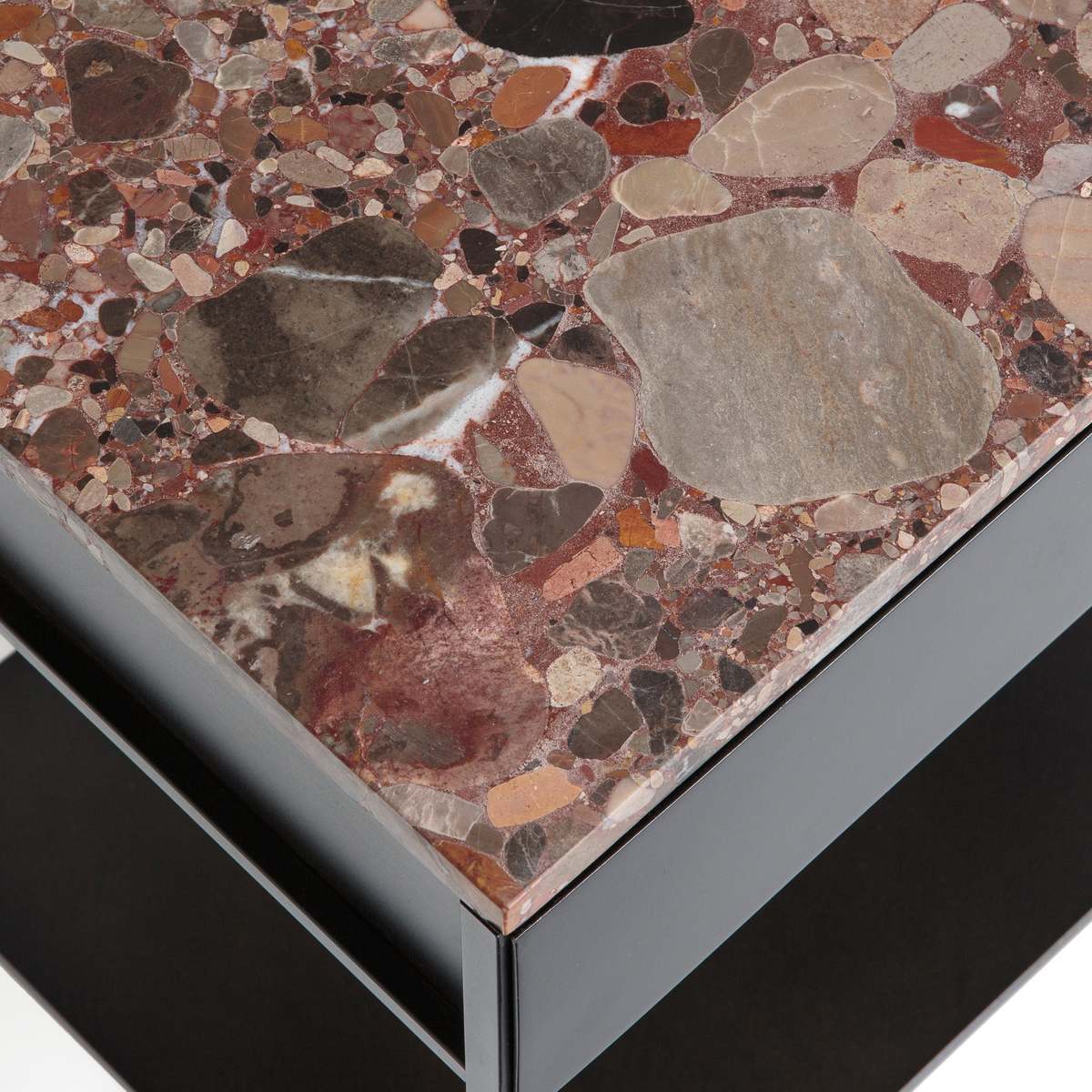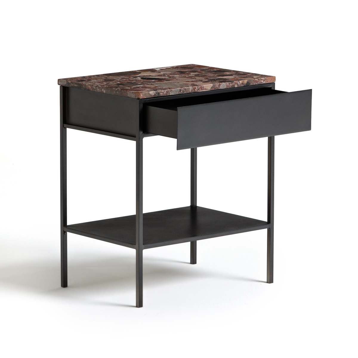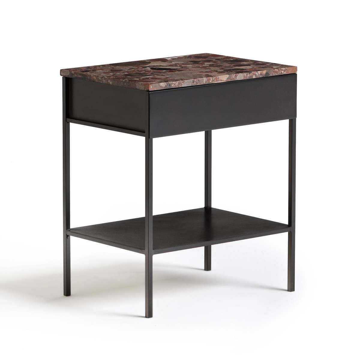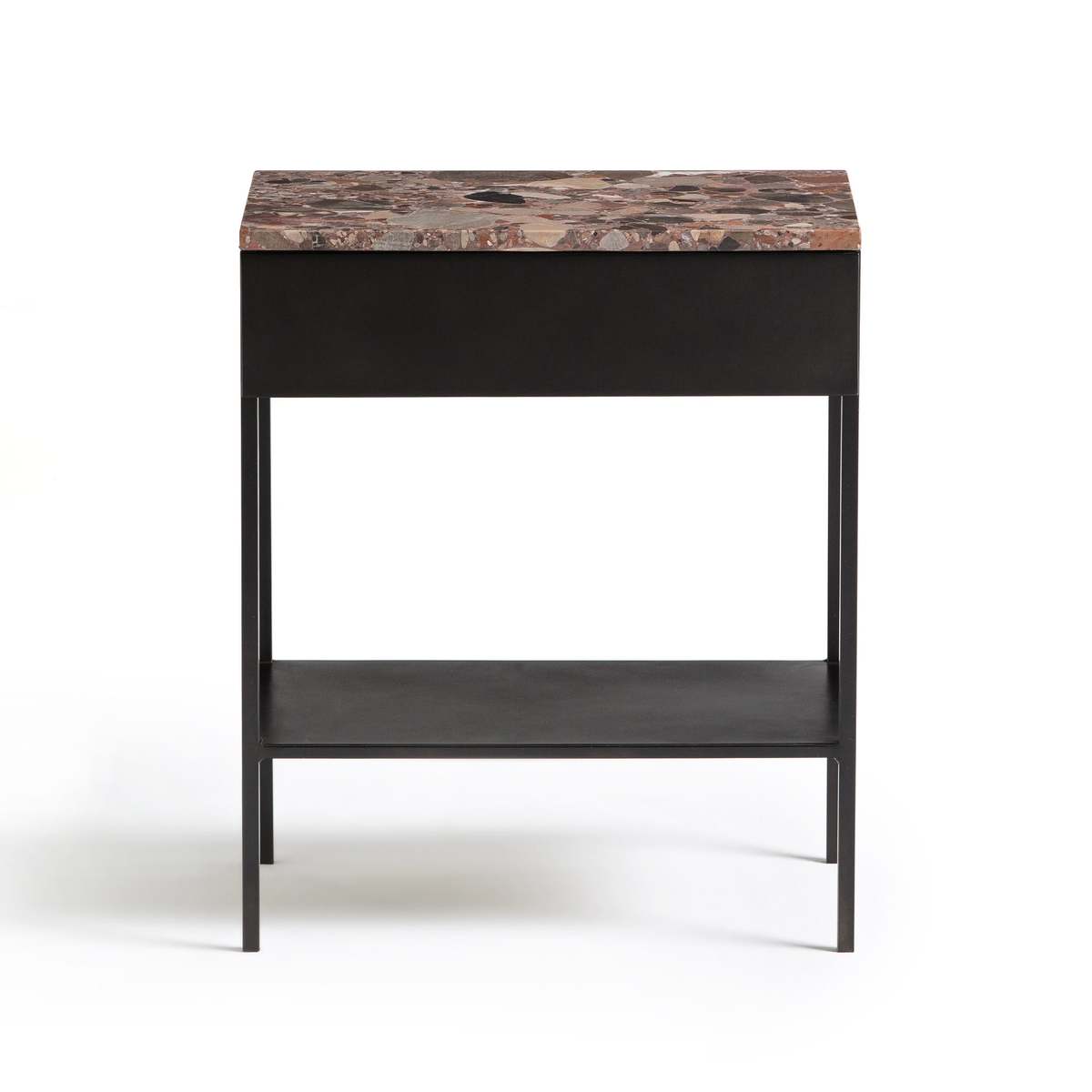 I love how the pink marble top of this nightstand adds a touch of understated luxury, making it a versatile piece for both contemporary and eclectic interiors. It works particularly well in rooms with colour accents or mixed material schemes, such as industrial with a splash of glam or modern rustic spaces. Practical styling tips include pairing it with minimalist lamps, a small dish for jewellery, or a stack of favourite books to create a curated look. Its simple black frame makes it easy to incorporate into various colour palettes, while the marble adds visual interest and a hint of opulence without overwhelming the space.