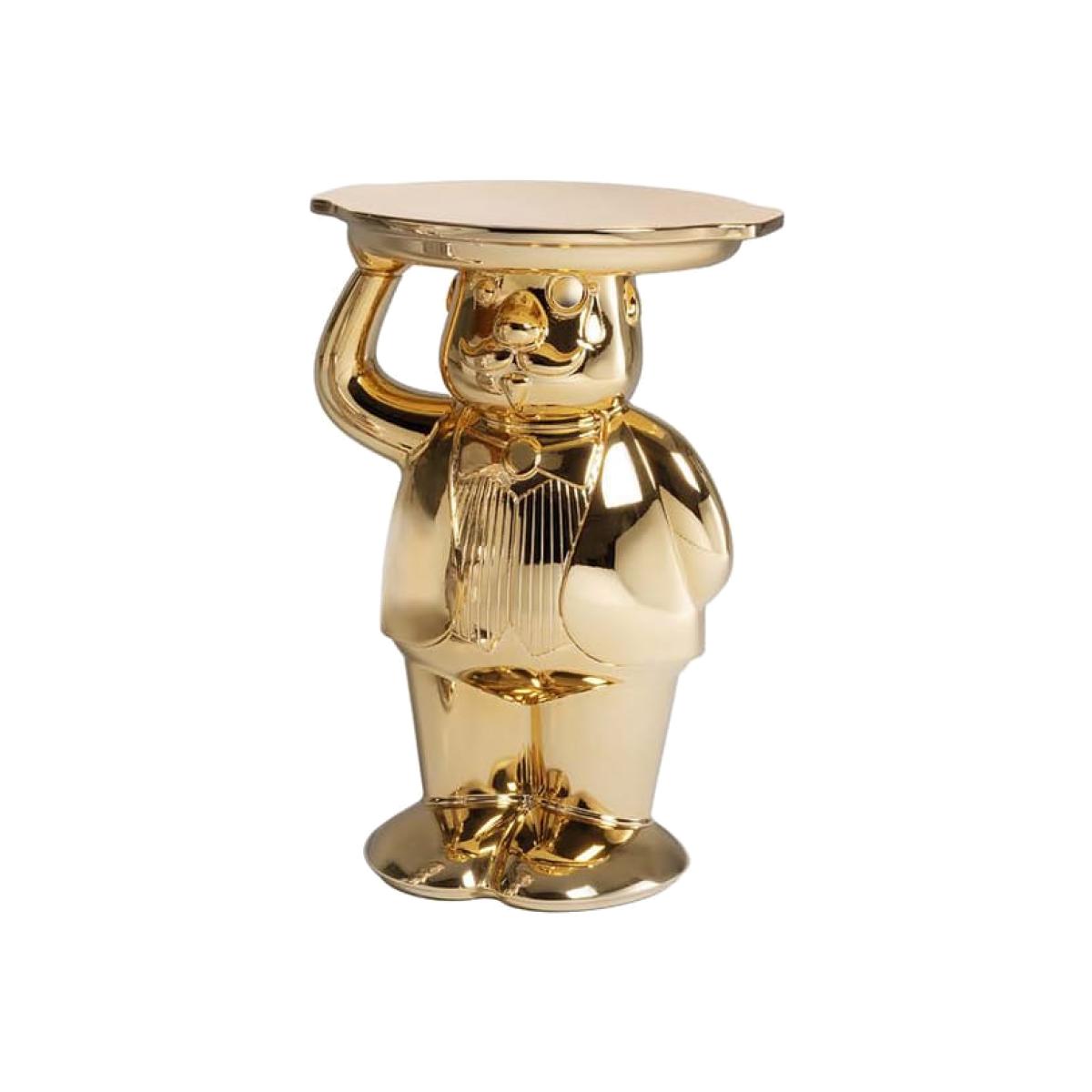 A humorous design winkWith its moustachioed butler silhouette, the Ambrogio side table overturns the codes of occasional furniture. Designed by Francesco Favaretto, this unusual piece seduces with its pop spirit and cheerfully offbeat aesthetic. Made from Polythene, it boldly plays the Card of misappropriation, while remaining functional and ultra-versatile. Its mirror-effect chrome finish adds a touch of sparkle and elegance. A subtle contrast that allows it to take on both arty interiors and more sophisticated, second-degree ambiances. Ambrogio is part of the kitsch chic and fun design trends, perfect for giving a twist to an overly conservative decor.