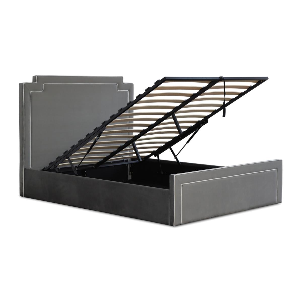 Redefine luxury and functionality with the Amelia Ottoman Bed. Featuring a sleek velvet finish with an elegant white trim around the headboard and footboard, it effortlessly enhances the aesthetics of any bedroom. The generous lift-up ottoman design offers ample storage space, helping you maintain a tidy living space.