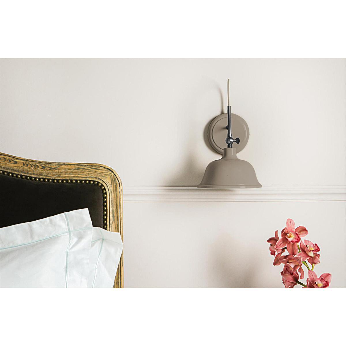 Meet the Amelia wall lamp, a deliciously stylish design from our Lighting Collection. The Amelia has a retro shape that inspires our best childhood memories. Complete with a chrome effect trim and a creamy finish in Taupe Grey for an earthy look, this design is the key to making any room feel inviting. The Amelia packs a delicate style punch that will beautify any room, but we believe this is the ultimate bedroom treat, perfectly placed at your bedside for late night reading.