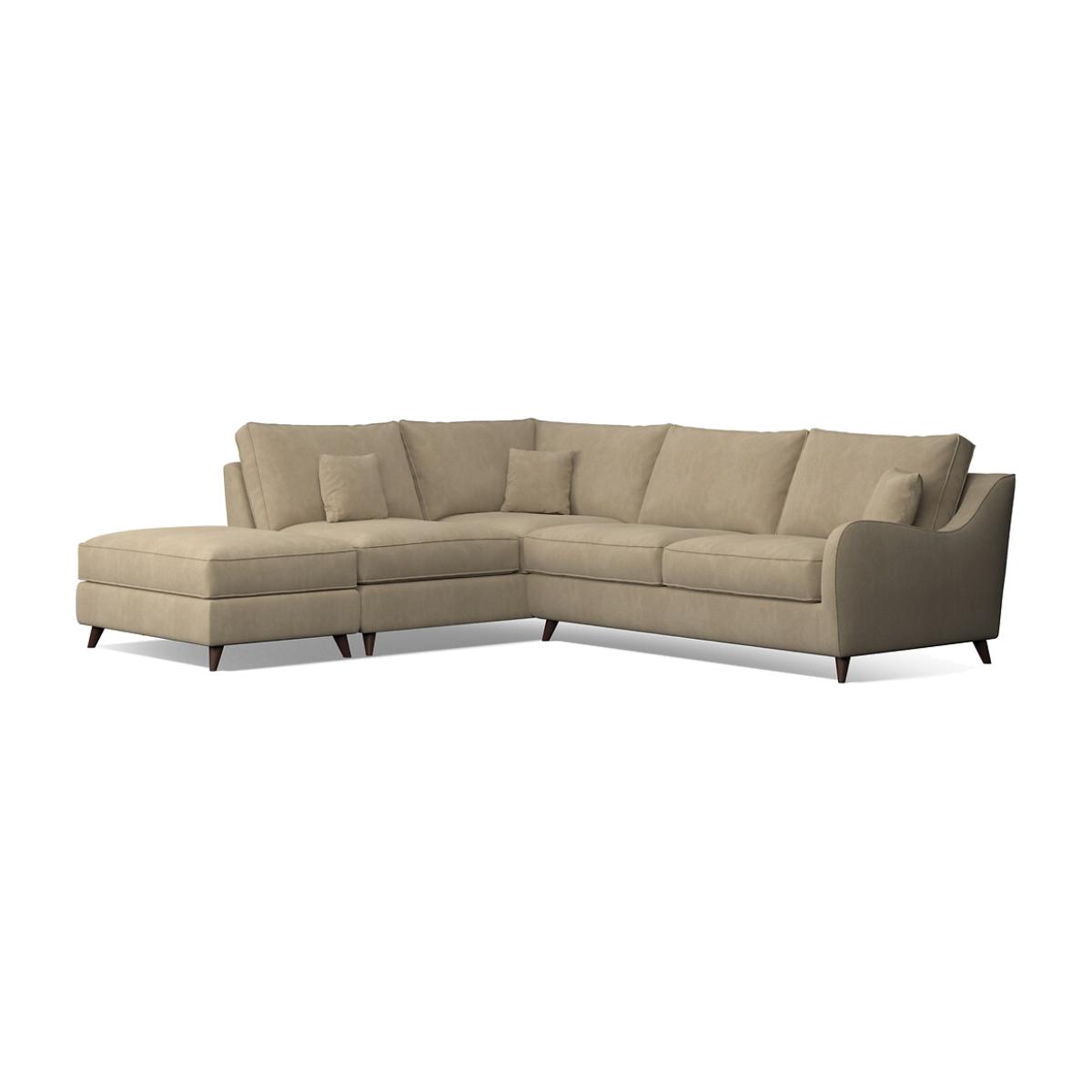 Amelia Soft Brushed Corner Sofa & Modular Footstool Set with Dark Wood Legs (Left Facing)