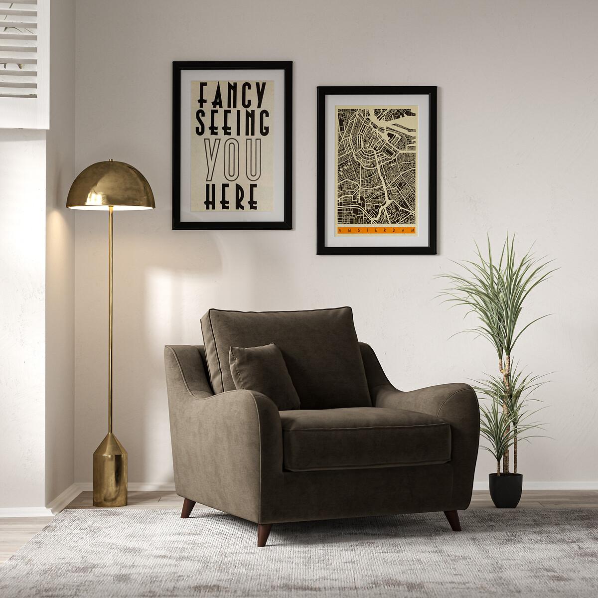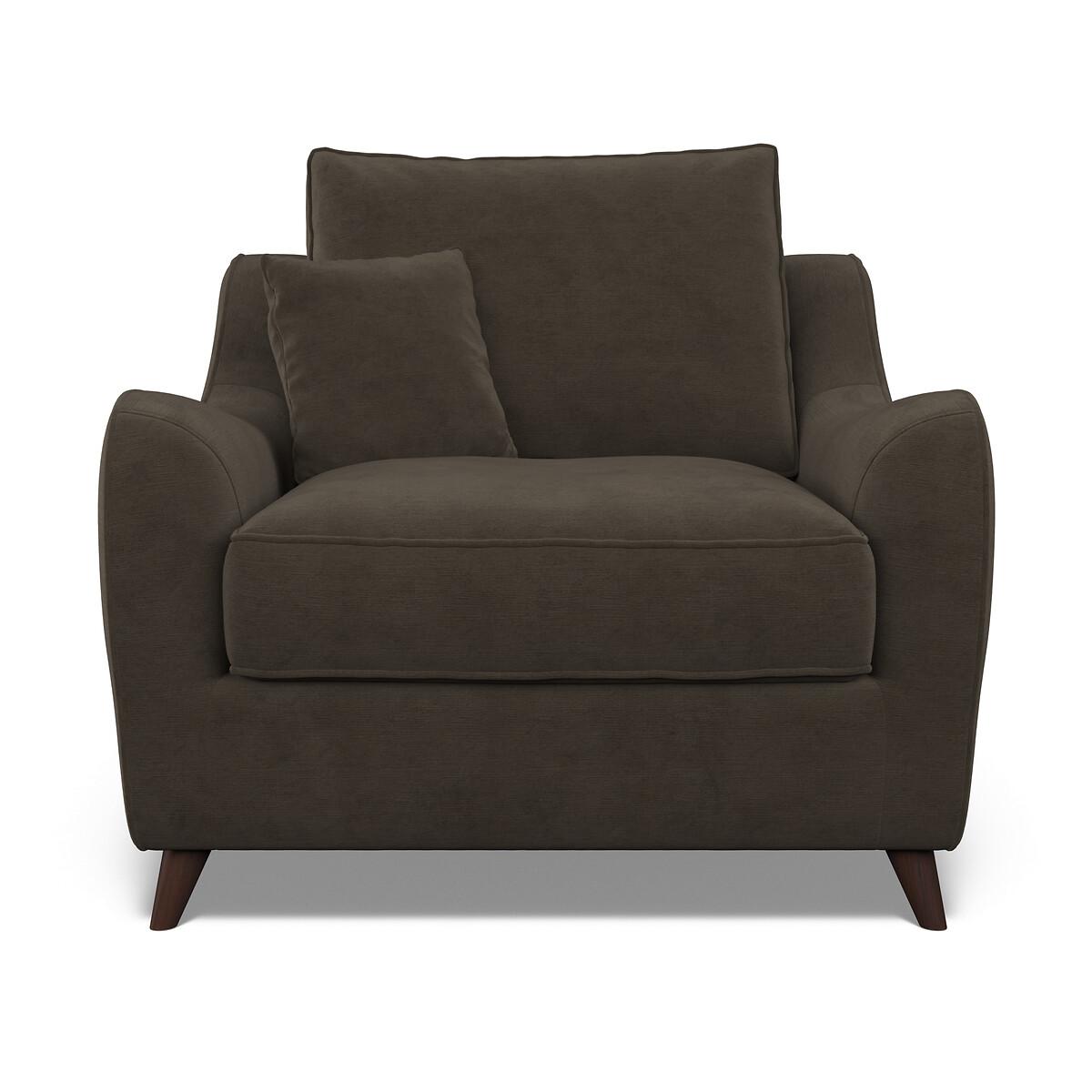This armchair is a great way to bring texture and colour depth into a space, thanks to its rich velvet upholstery. I love its versatile silhouette, which works well in both modern and classic interiors-pair it with contemporary or vintage furnishing for added visual interest. The dark wood legs add warmth and contrast, making it a grounded yet elegant piece. Styling tips include layering with cushions in contrasting textiles or colours to elevate the look, and placing it in cosy corners or alongside a neutral sofa for a balanced aesthetic. Its plush seat also makes it an inviting spot for relaxation, perfect for living rooms or reading nooks.