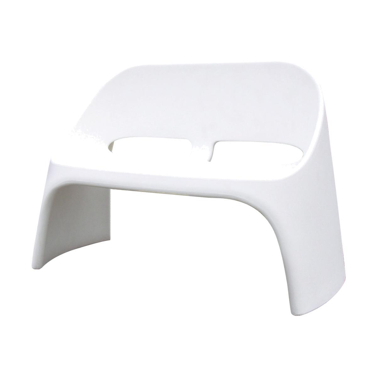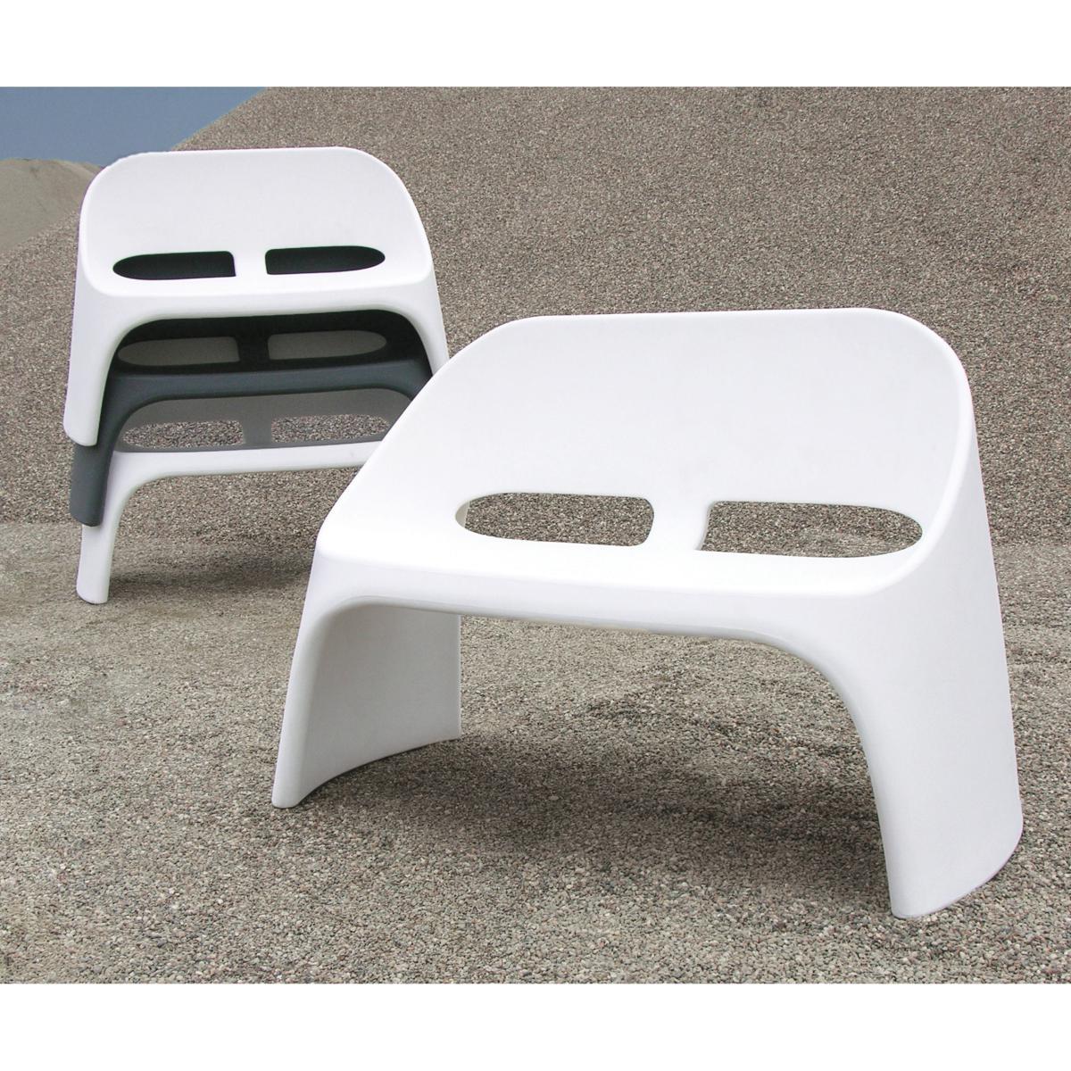 Reveal the fresh and very graphic line for this magnificent set - armchair and bench. This mono-block of polyethylene presents a welcoming silhouette with rounded edges. The open back allows comfort and ease. These are light, stackable, and can be used inside and out.