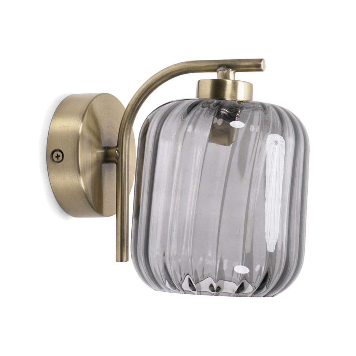 The Amelie ribbed glass shade wall light in gold is all about glow, and all about style. A gold base with a ribbed glass shade, it has an air of art deco sophistication to it. The perfect finishing touch for any living room, bedroom or hallway. Top tip swap out bedside lamps for wall lights to save on surface space. A wall mounted, hard wired wall light in a gold finish with a scooping arm holding a ribbed, smoked glass shade. An elegant brushed gold wall light base with a scooping arm that balances a ribbed, smoked glass shade. Add a little art deco glamour to your space with the Amelie ribbed glass wall light in gold. With smoked glass shades and gold body, this ties together finishes without stealing the show. But, dont be fooled Amelie knows how to catch an eye. Requires 1x G9 bulb, max 10. W. Personalise your home lighting with your choice of warm or cool bulbs. Requires installation and hardwiring. Be sure to consult a professional.