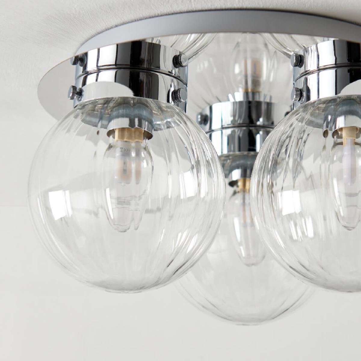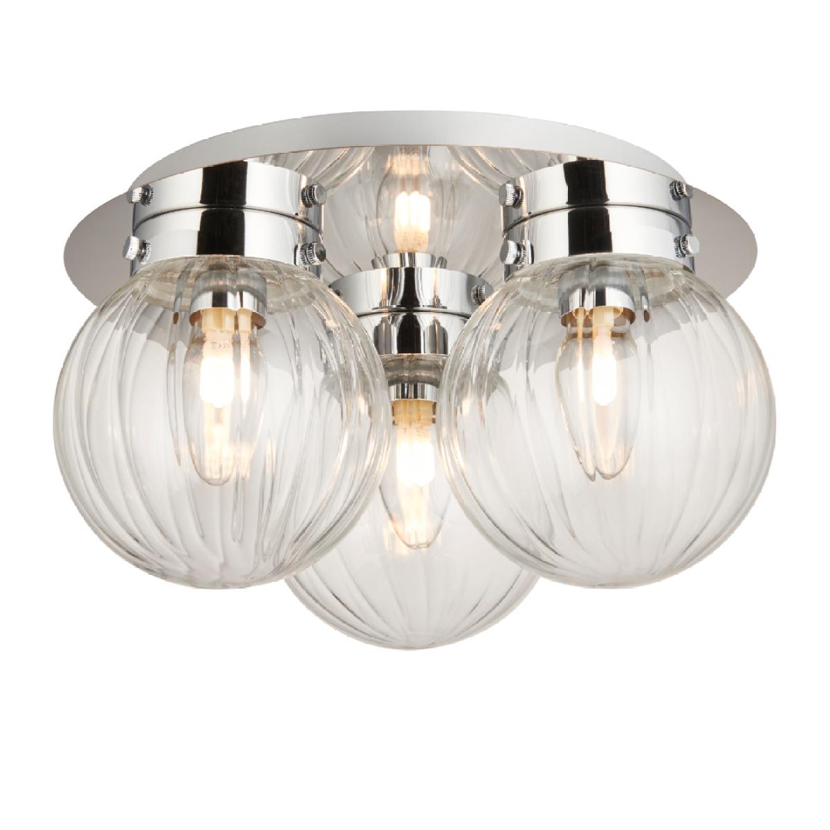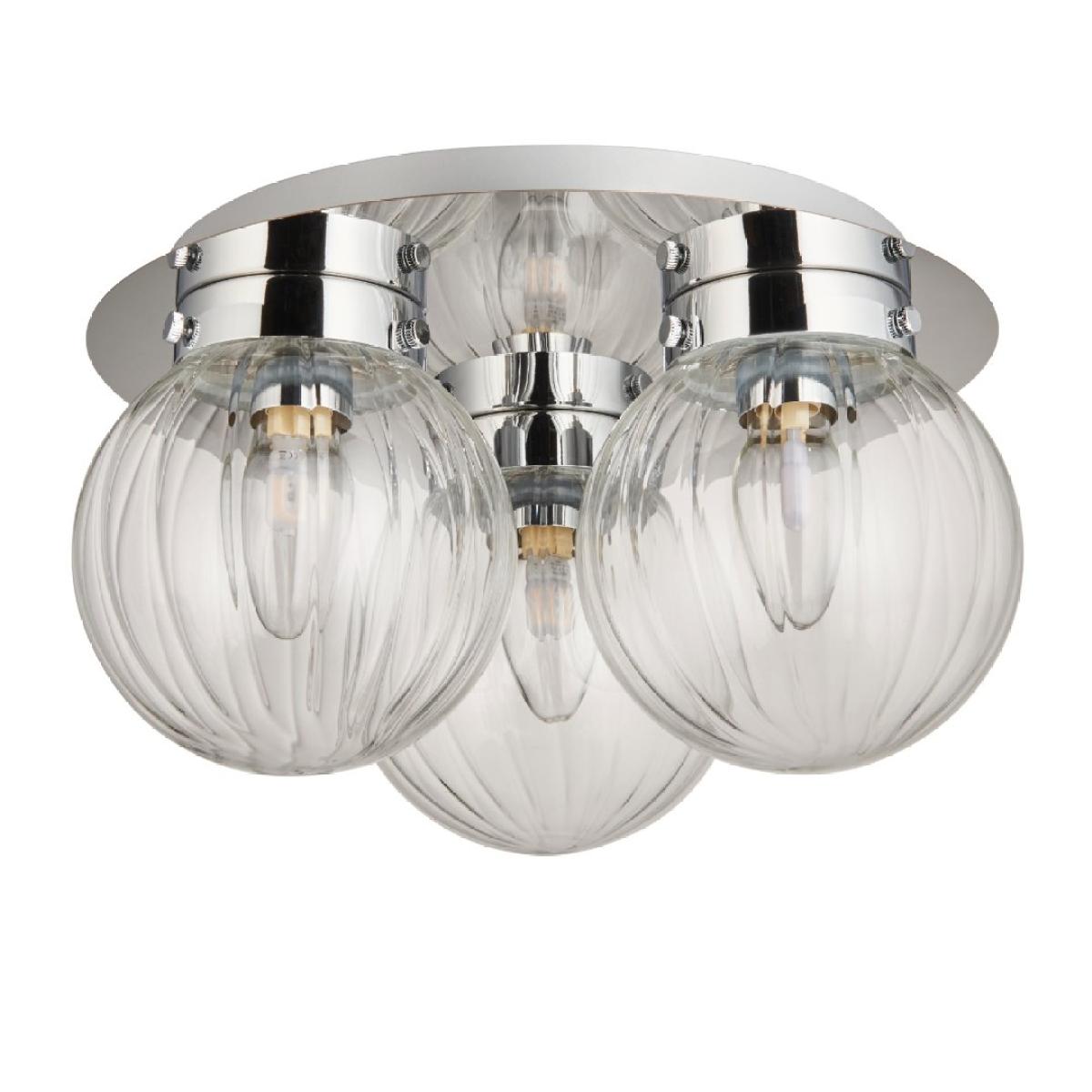 Classic flush 3 light ceiling light featuring clear glass shades. Stunning and stylish in design, the Amelie is a dimmable flush ceiling light. Designed with lower ceilings in mind, this ceiling light adds the perfect finishing touches without compromising on space.