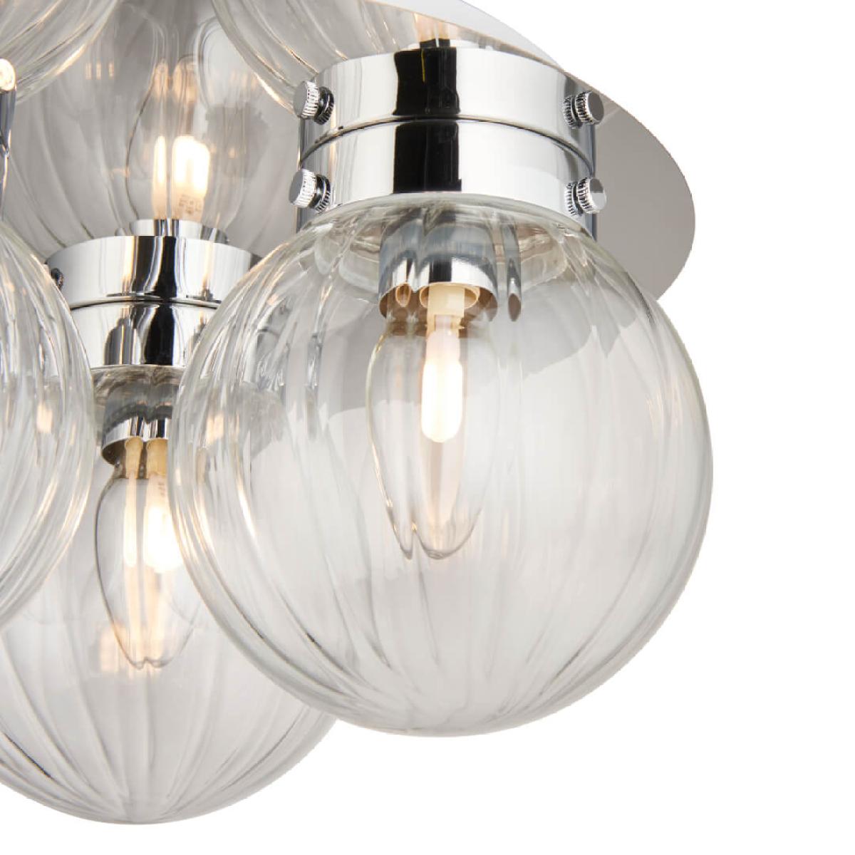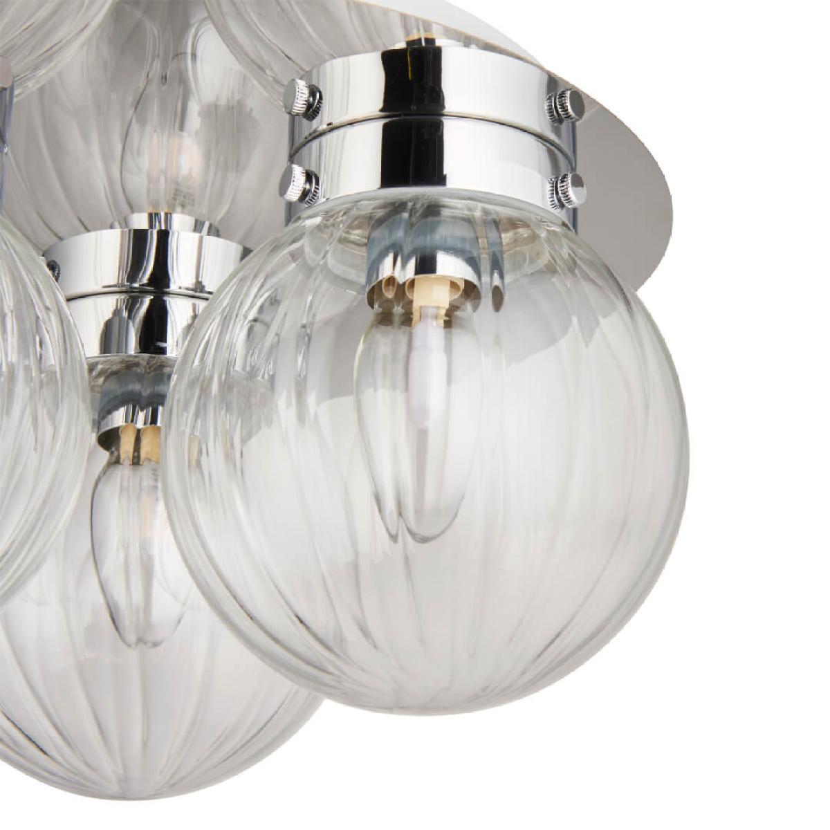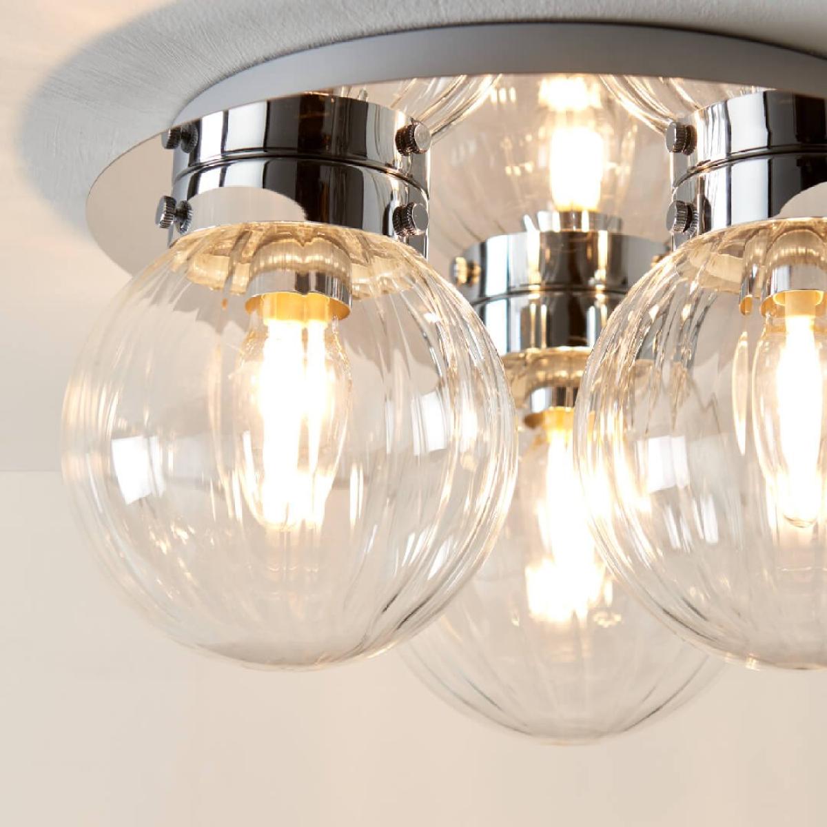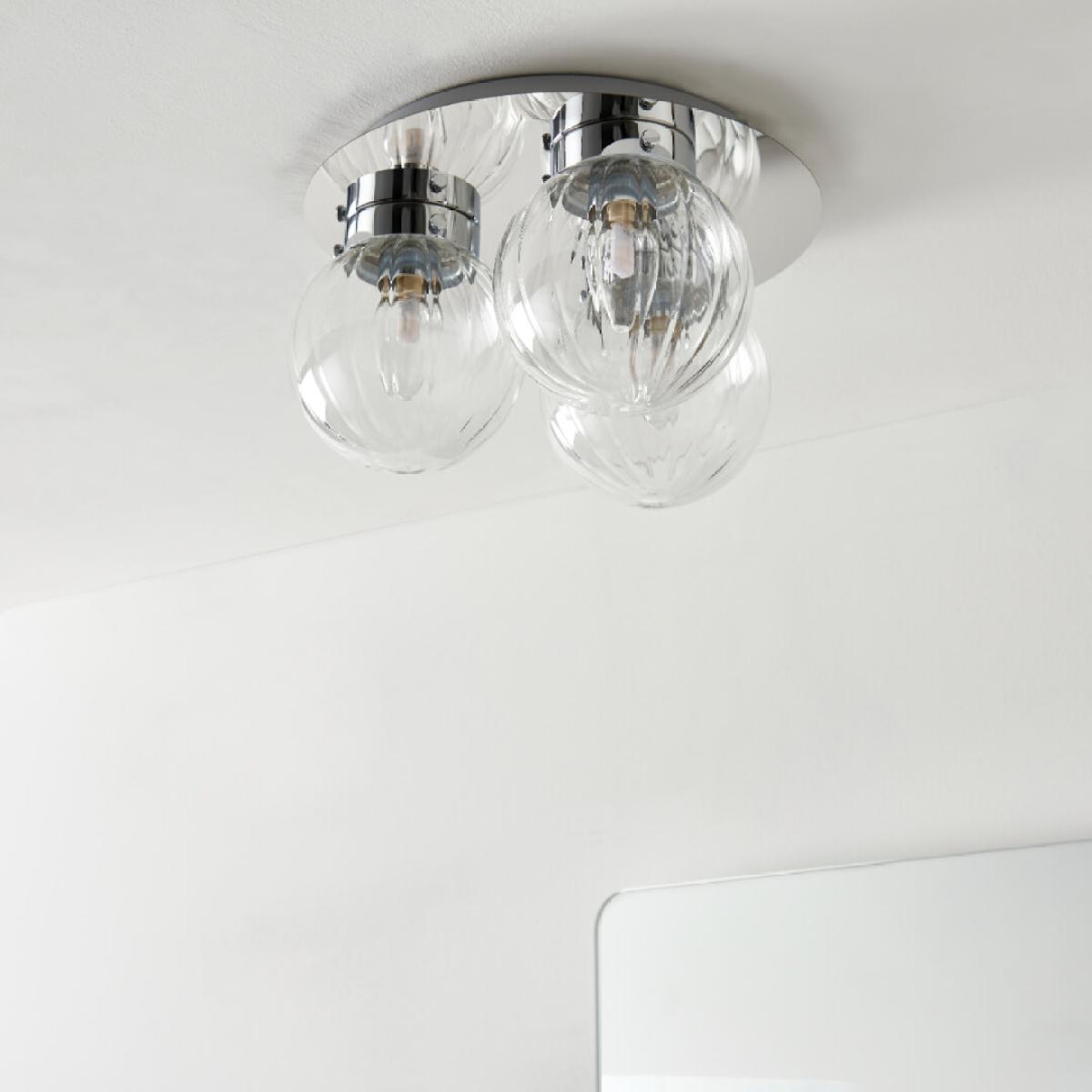 Classic flush 3 light ceiling light featuring clear glass shades. Stunning and stylish in design, the Amelie is a dimmable flush ceiling light. Designed with lower ceilings in mind, this ceiling light adds the perfect finishing touches without compromising on space.