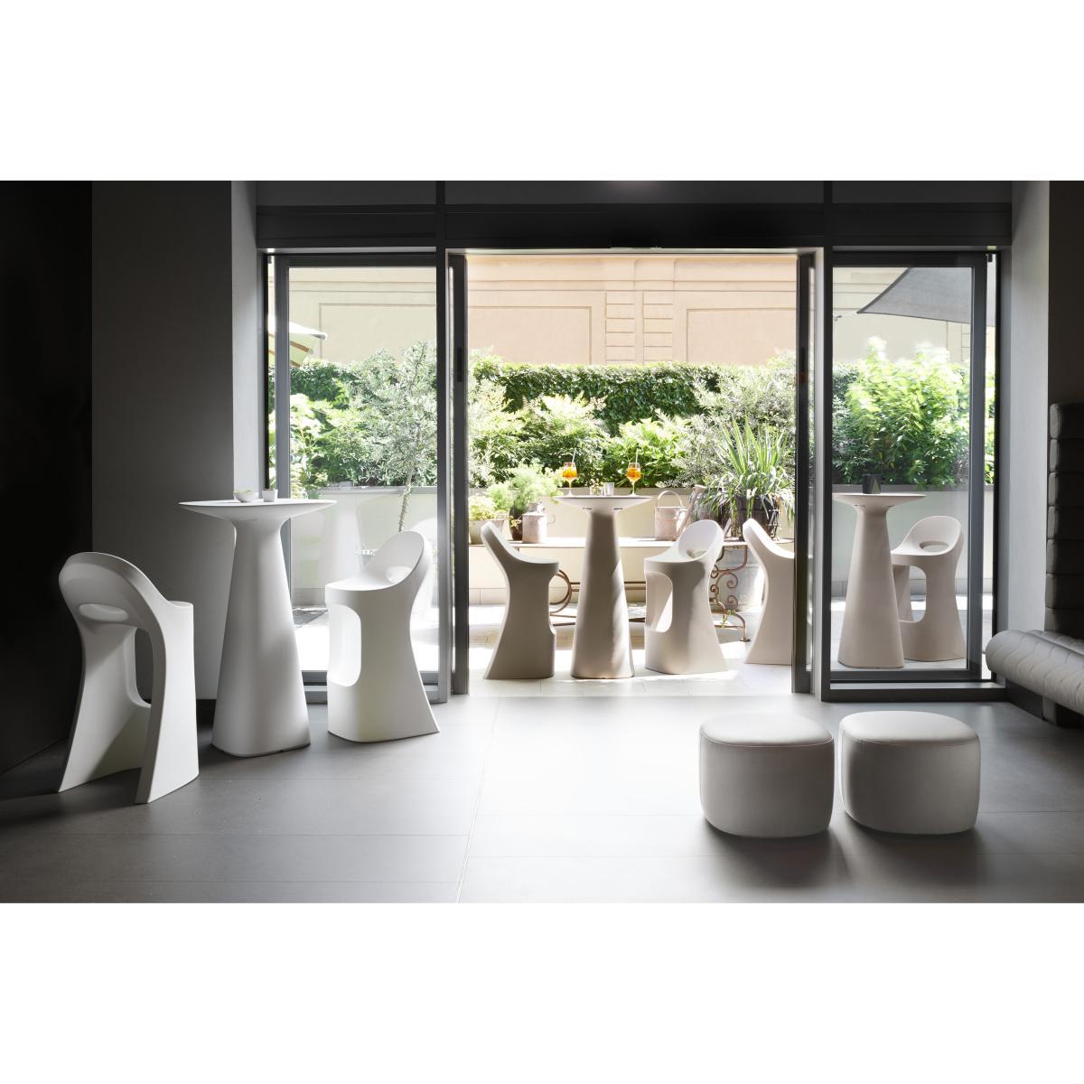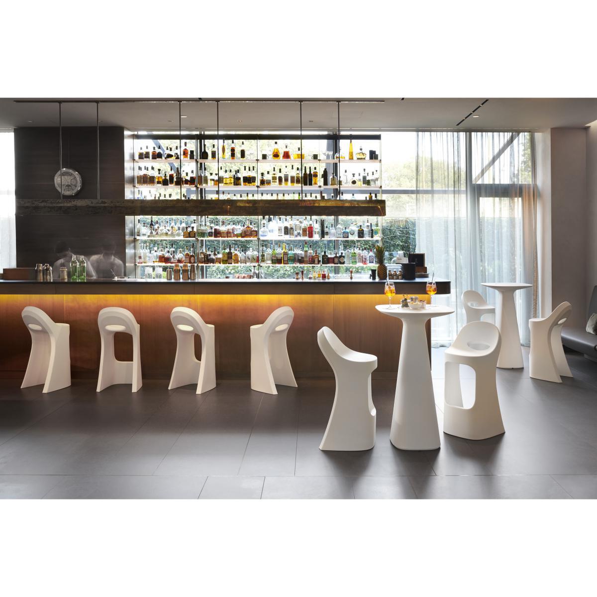 The conical line, which characterises the entire Amélie collection, is found in the broad foot of the Amélie Up high table. This conical shape provides perfect stability. Made of rotomoulded polyethylene, this high table can be used indoors and out: it’s perfect for creating a contemporary dining area in a kitchen or on a terrace. Highly robust, it’s a perfect product for contract and events use. Amélie Up is the perfect complement to the Amélie Sit Up bar stool.