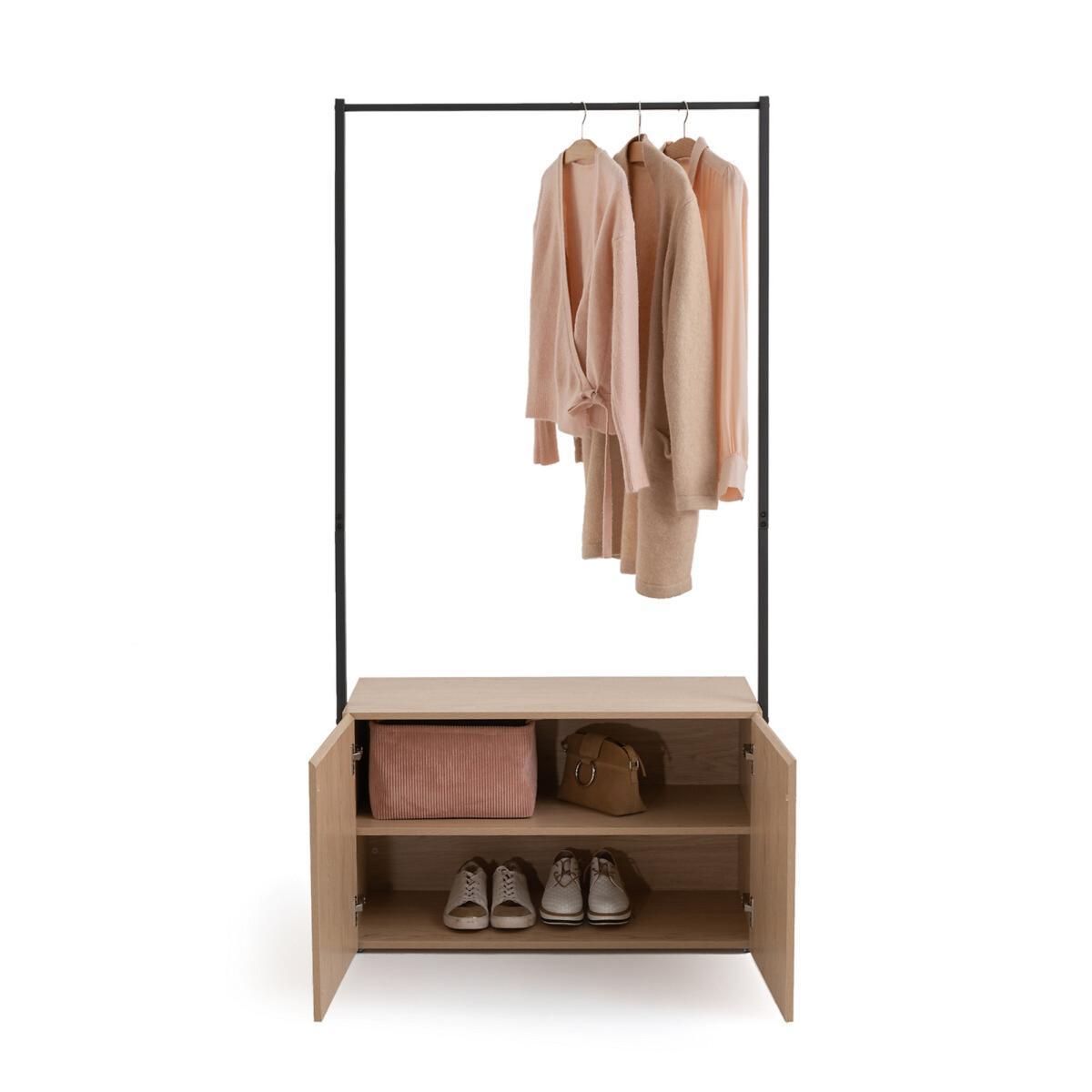 Looking for a smart piece of furniture for your hallway? In addition to its inclined hanging rail, it has a cupboard to store your shoes or other fashion accessories: a simple and practical solution.
