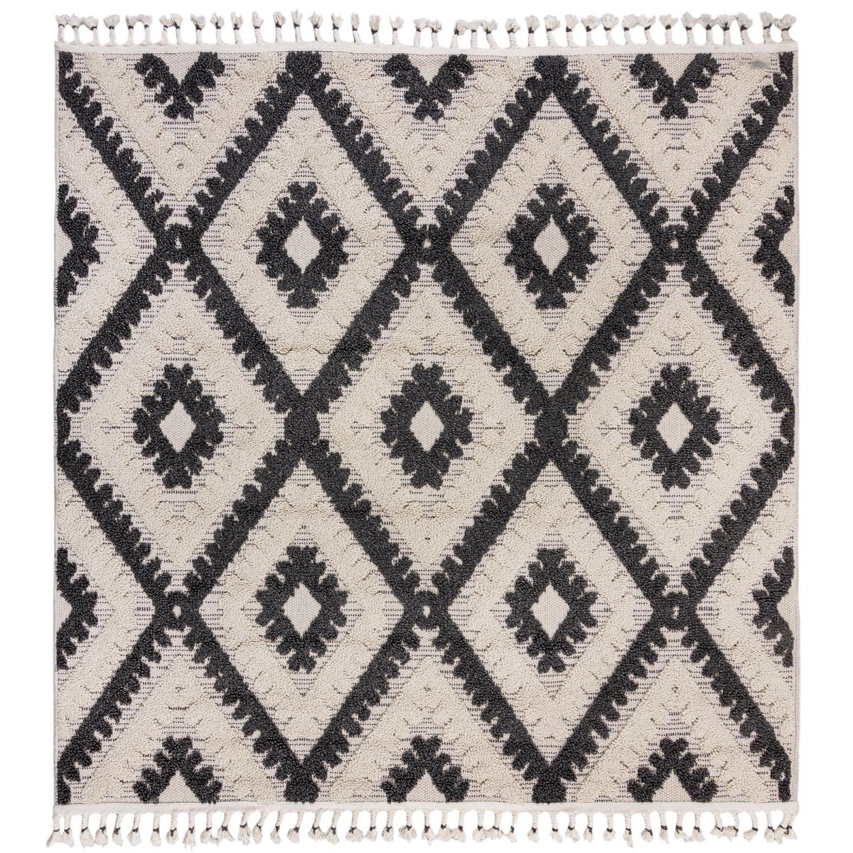 Say hello to the Amezri Square Rug. Pair bold monochromatic shades with artisanal style tassels and weaving to create the ideal laid-back, bohemian centre piece. The hand-tufted effect is ideal for getting some softness into your space. In 100% polypropylene pile these rugs are extra hard-wearing, ideal for busy homes. We love using the Amezri Square Rug to create a statement zone in living rooms and dining rooms. A small amount of fibre loss is normal. Do not pull loose fibres, just trim with scissors. Safe for use on a heated floor. Use a suction type vacuum - rotating brushes may damage this rug. Re-roll your rug pile out for 24 hours to reduce curling. Regularly turn to ensure even wear. An anti-slip mat will help prevent slipping. Blot spills immediately with a clean, dry white cloth. Do not rub. Do not place this rug near an open fire. Please do not leave children or infants unattended.