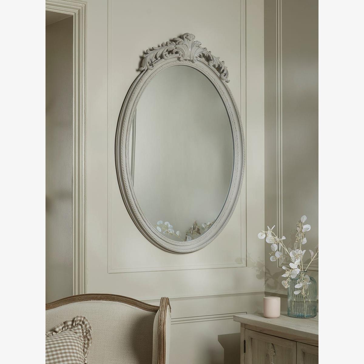 I love this mirror for its timeless elegance and subtle detailing. The ornate top adds a touch of classic sophistication, making it ideal for traditional interiors or even adding a luxe feel to a modern space. It works particularly well above a console table or in a bedroom as a statement piece. Practical styling tips include pairing it with minimal decor to let the frame shine, or layering it with complementary vintage accessories for an eclectic yet chic look. Its versatile design means it can seamlessly fit into both formal and relaxed spaces, enhancing the overall aesthetic without overpowering the surrounding furniture.