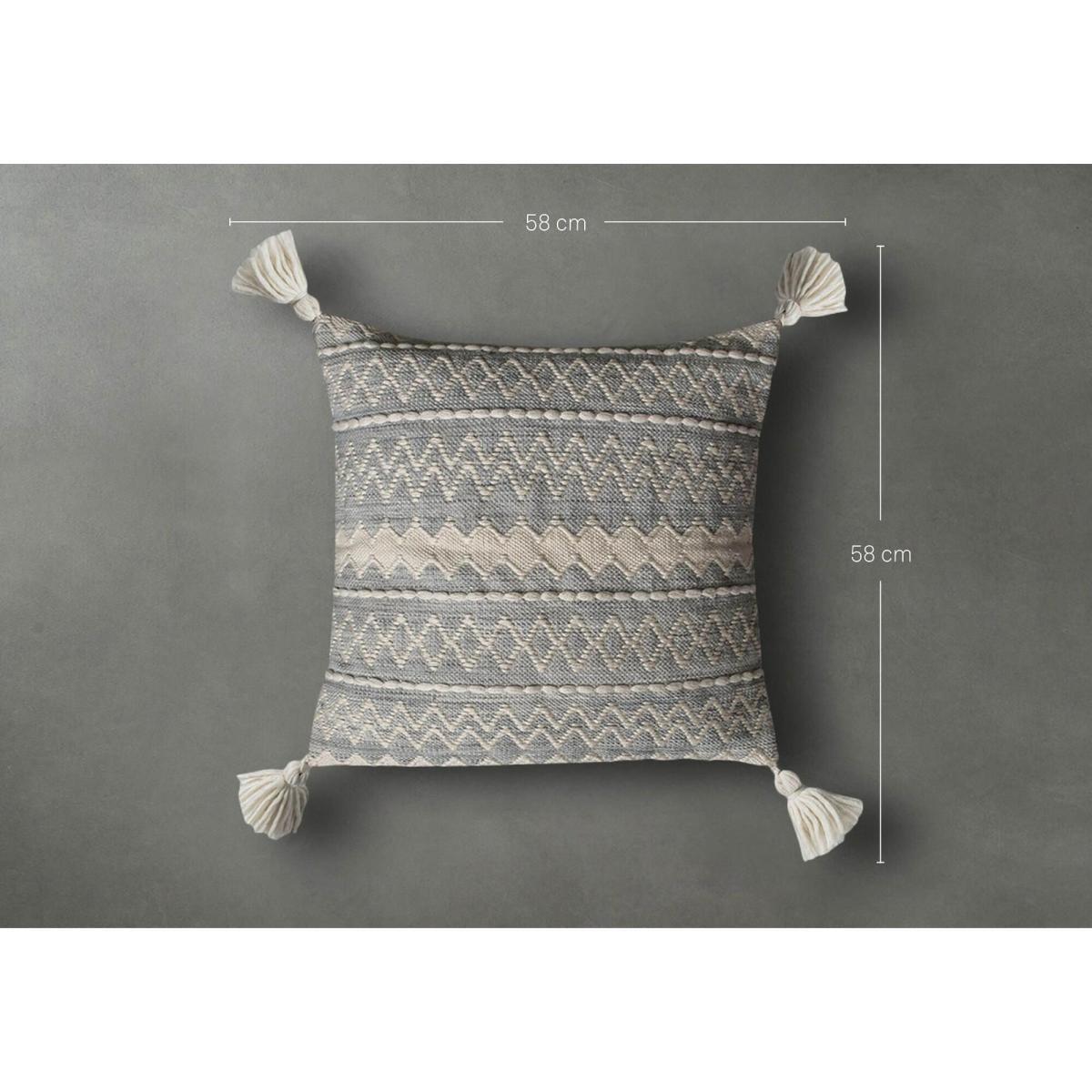 I love this cushion for its subtle zigzag pattern and versatile grey palette, which makes it a great addition to both contemporary and more relaxed interiors. It pairs well with neutral tones, textured fabrics, or even pops of colour to add visual interest. In practical terms, it’s ideal for layering on sofas or armchairs to bring a cosy, inviting feel. For styling tips, consider mixing it with other textured cushions or throws to enhance a layered look. Its tassels add a touch of playfulness, making it suitable for casual living rooms or even boho-inspired spaces. Keep the overall decor simple to let this piece stand out without overwhelming the space.