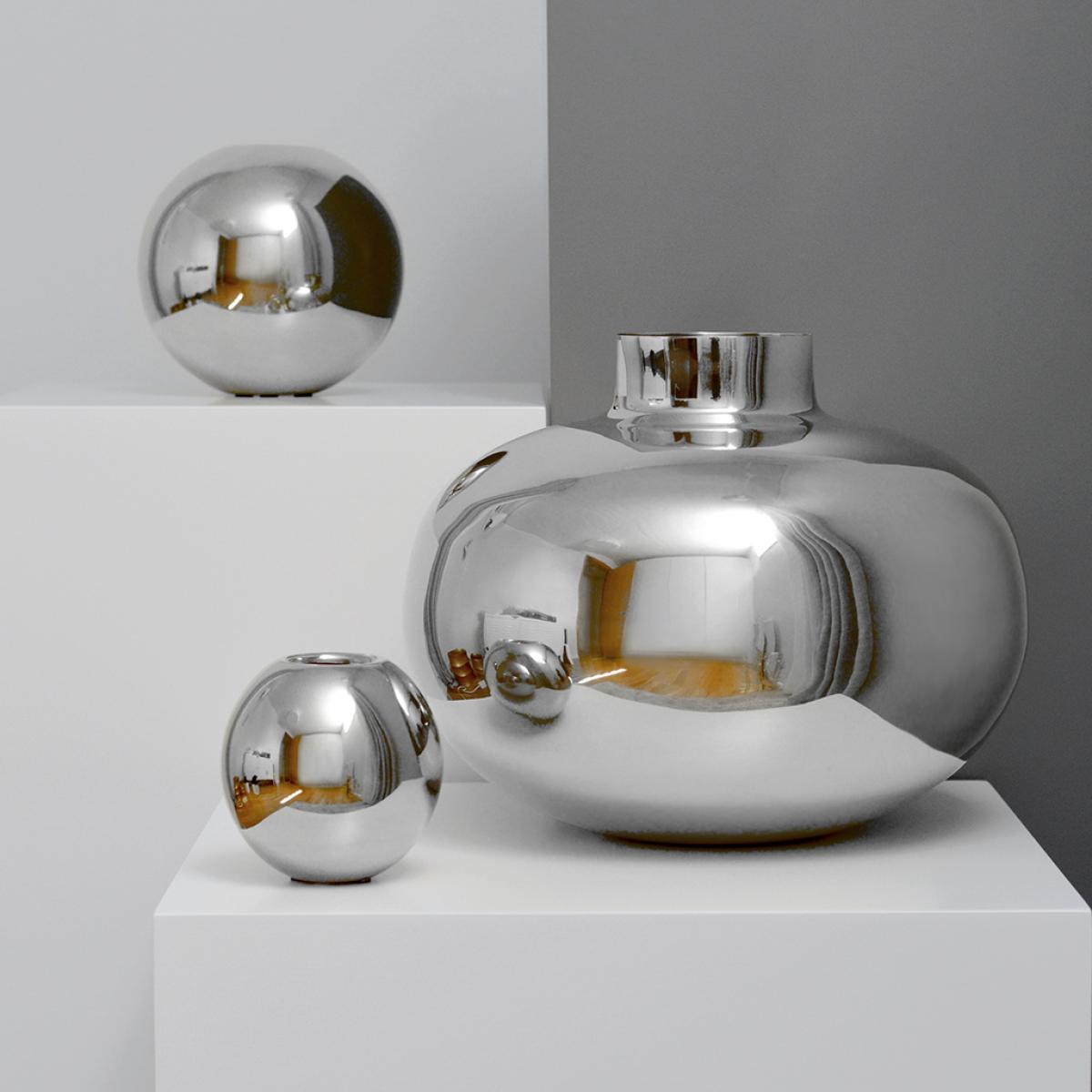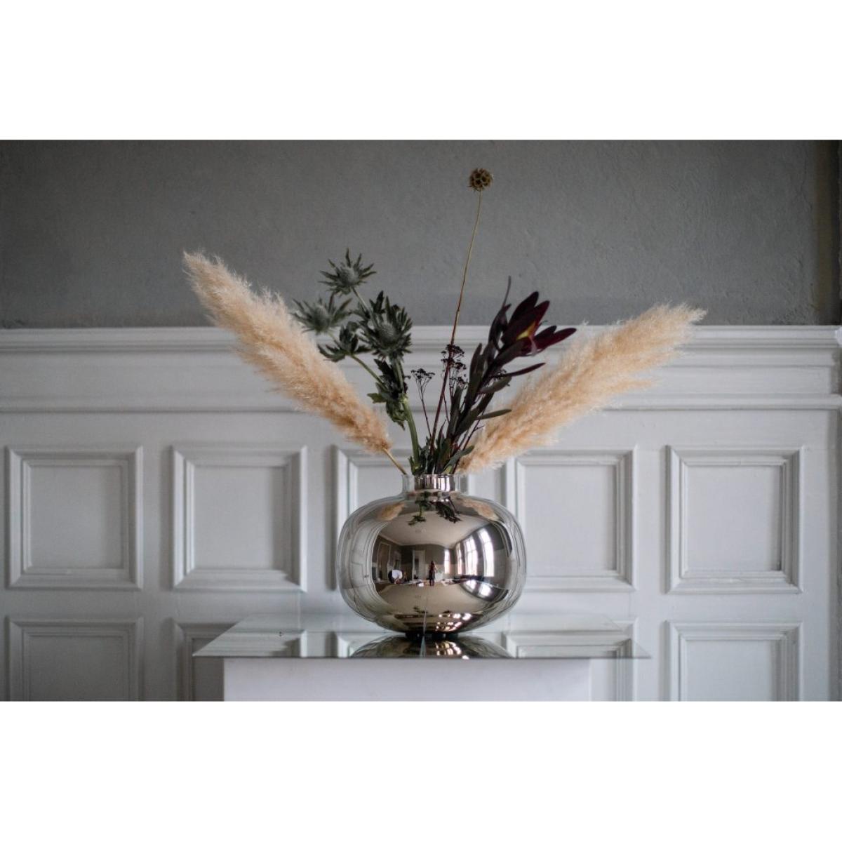 I love this vase for its sleek, modern appeal and versatile size, making it a stylish focal point on any surface. Its nickel-plated finish adds a contemporary touch that works well in minimalist, industrial, or modern interiors, but it can also provide an elegant contrast in more traditional spaces. Practical styling tips include pairing it with fresh or dried flowers for colour and texture, or letting its reflective surface shine on its own as a sculptural piece. It’s equally effective as a standalone object or grouped with other metallic accents to create a cohesive look. Keep in mind, its rounded shape lends itself to soft, symmetrical flower arrangements or minimalist displays for a clean aesthetic.